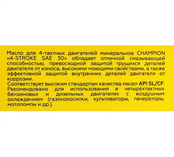 Масло минеральное (1 л; SAE 30) для 4-тактных двигателей Champion 952852