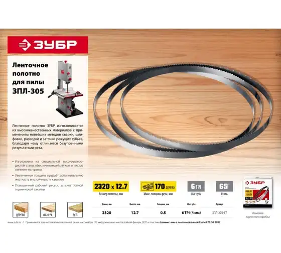 Полотно ленточное для пилы ЗПЛ-305 (2320х12,7х0,5 мм, 6 TPI) ЗУБР ЗПЛ-305-6Т