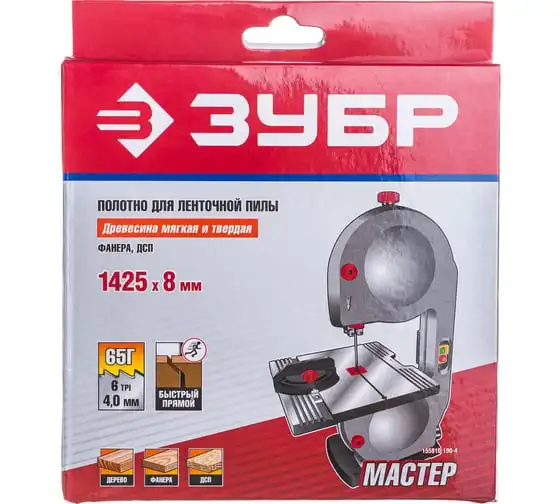 Полотно для ленточной пилы Зубр ЗПЛ-350-190 L-1425 мм H-8.0 мм шаг зуба - 4 мм 6TPI материал углеродистая сталь - 65Г 155810-190-4