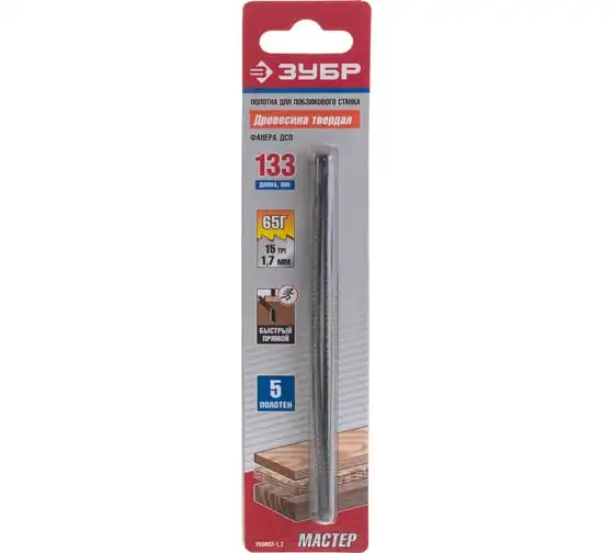Полотно пильное по дереву (5 шт; 133 мм; 15 TPI; сталь 65Г) для лобзиковых станков ЗСЛ-90 и ЗСЛ-250 Зубр 155802-1.7