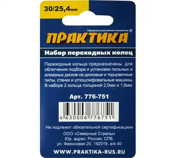 Кольцо переходное (30/25.4 мм) для дисков ПРАКТИКА 776-751