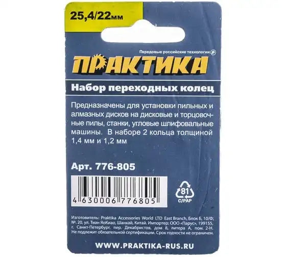 Кольцо переходное (25.4/22.2 мм) для дисков ПРАКТИКА 776-805