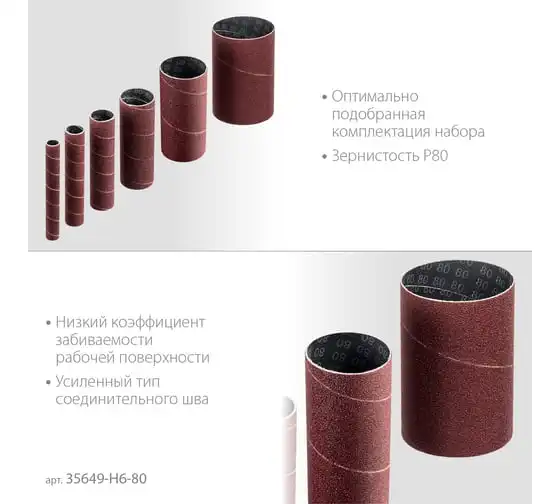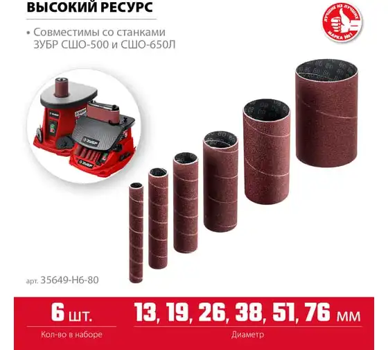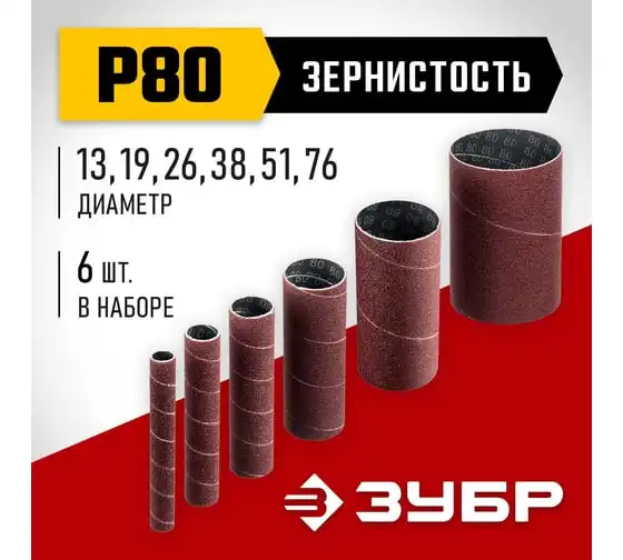 Втулки шлифовальные для станка СШО-500 набор 6 шт ЗУБР 35649-H6-80