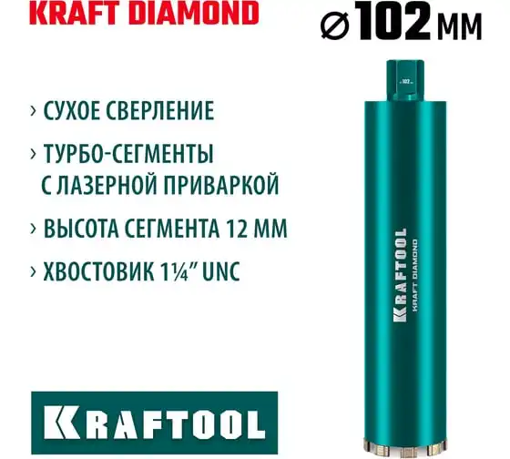 Алмазная коронка по железобетону KRAFTOOL Diamond 102 мм 29825-102