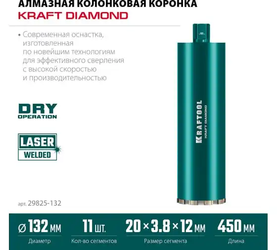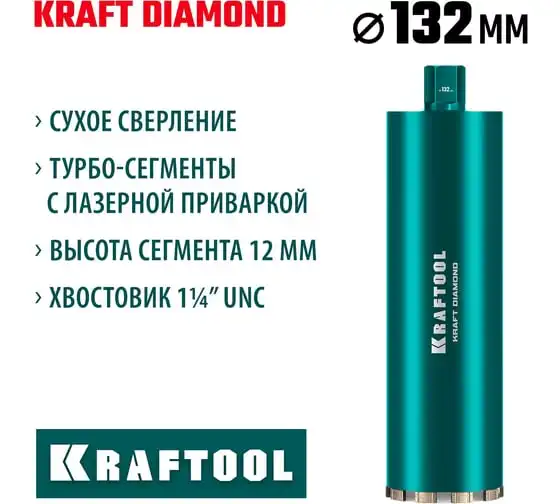 Алмазная коронка по железобетону KRAFTOOL Diamond 132 мм 29825-132