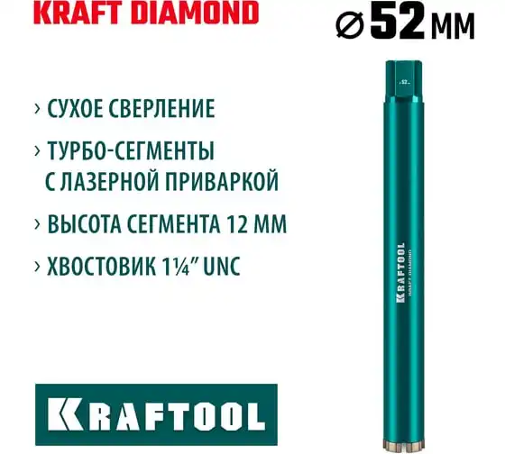 Алмазная коронка по железобетону KRAFTOOL Diamond 52 мм 29825-052