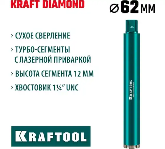 Алмазная коронка по железобетону KRAFTOOL Diamond 62 мм 29825-062