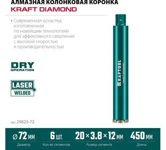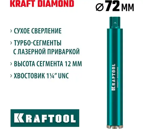 Алмазная коронка по железобетону KRAFTOOL Diamond 72 мм 29825-072