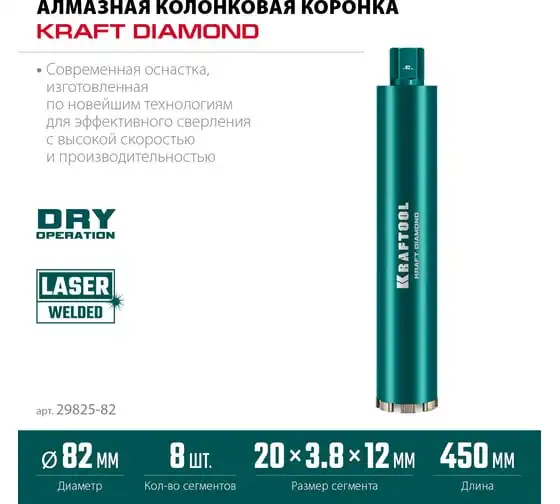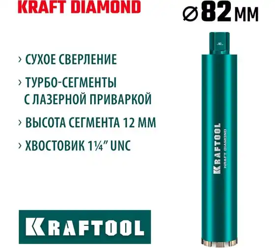 Алмазная коронка по железобетону KRAFTOOL Diamond 82 мм 29825-082