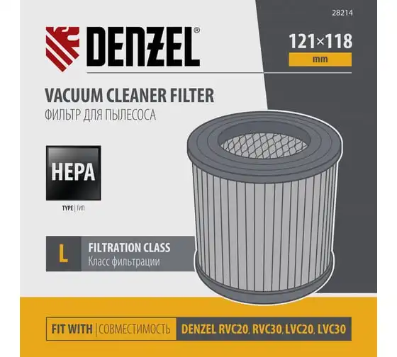 Фильтр каркасный-складчатый Hepa для пылесосов RVC20, RVC30, LVC20, LVC30 Denzel 28214