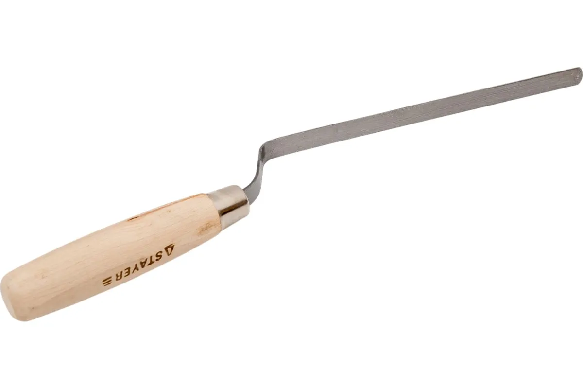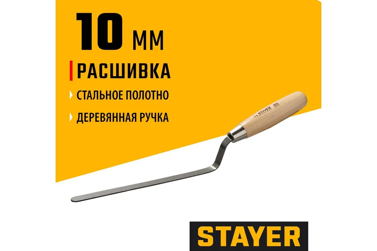 Расшивка каменщика для швов плоская, 10мм STAYER 0840-10 используется для выравнивания и укрепления швов во время строительных работ при кирпичной и каменной кладке. Оснащена полотном из прочной инструментальной стали, которая отличается износостойкостью и долговечностью. Деревянная рукоять удобна в применении.