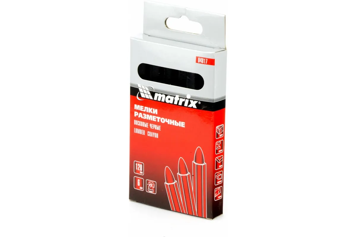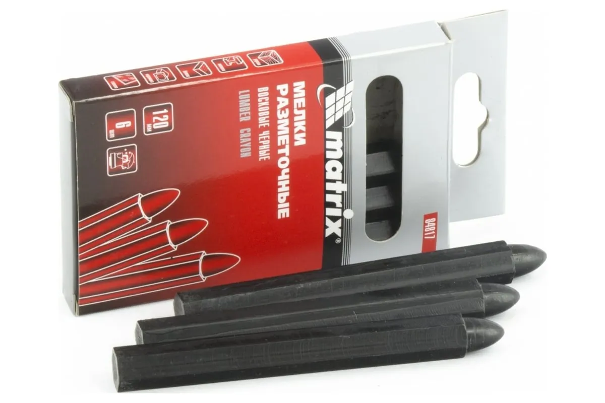 Черные разметочные восковые мелки Matrix 84817 длиной 120 мм, 6 шт. в коробке, пригодятся для нанесения линий и различных обозначений. Они универсальны, поэтому возможно применение на поверхностях с гладкой и шероховатой текстурой: бетоне, металле, пластике, керамике, стекле.