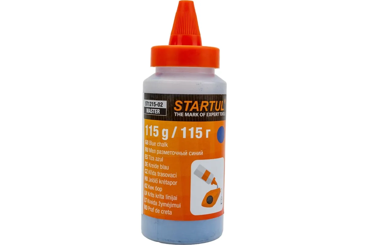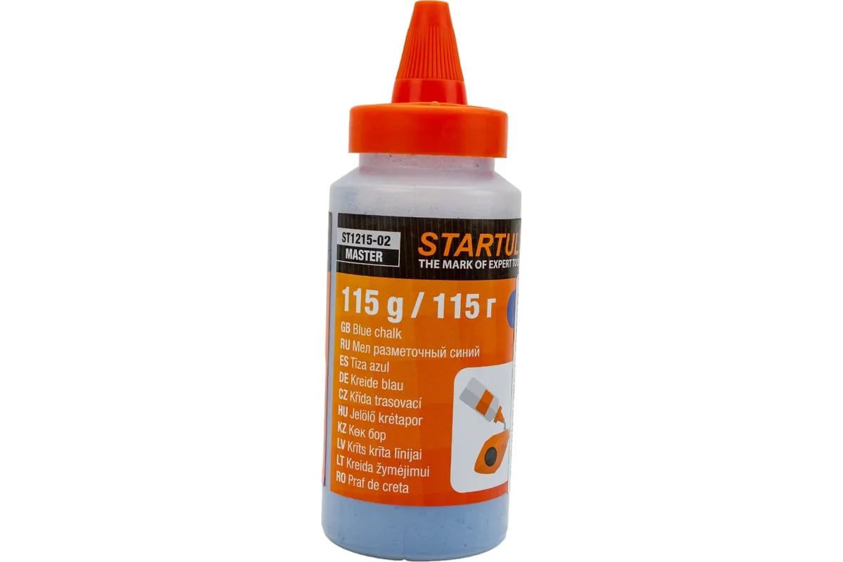 Разметочный мел STARTUL синий 115 г ST1215-02применяется для заправки малярных разметочных шнуров, которые используют для нанесения разметки в процессе проведения строительных и отделочных работ. Мел представлен в виде порошковой смеси. Цвет - синий.