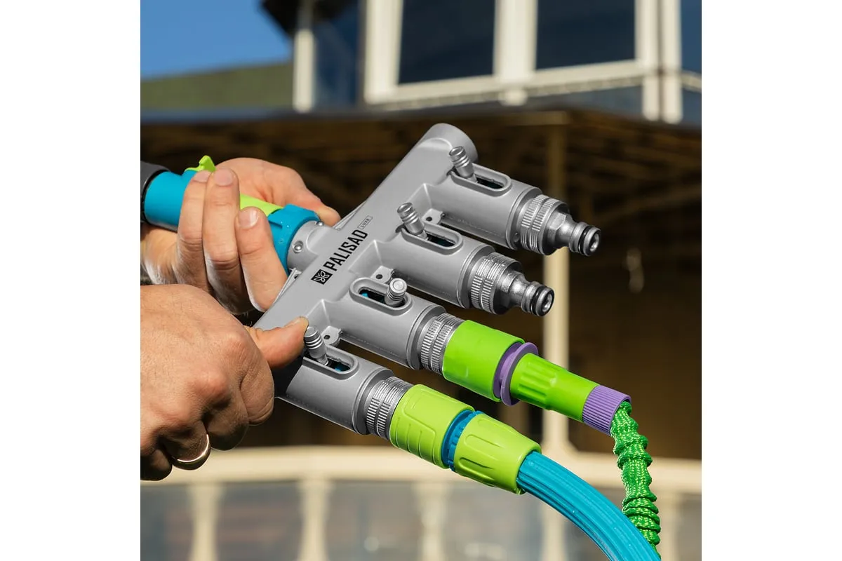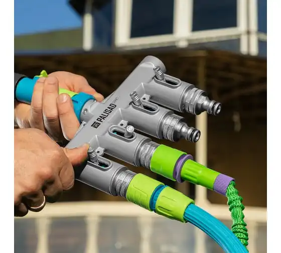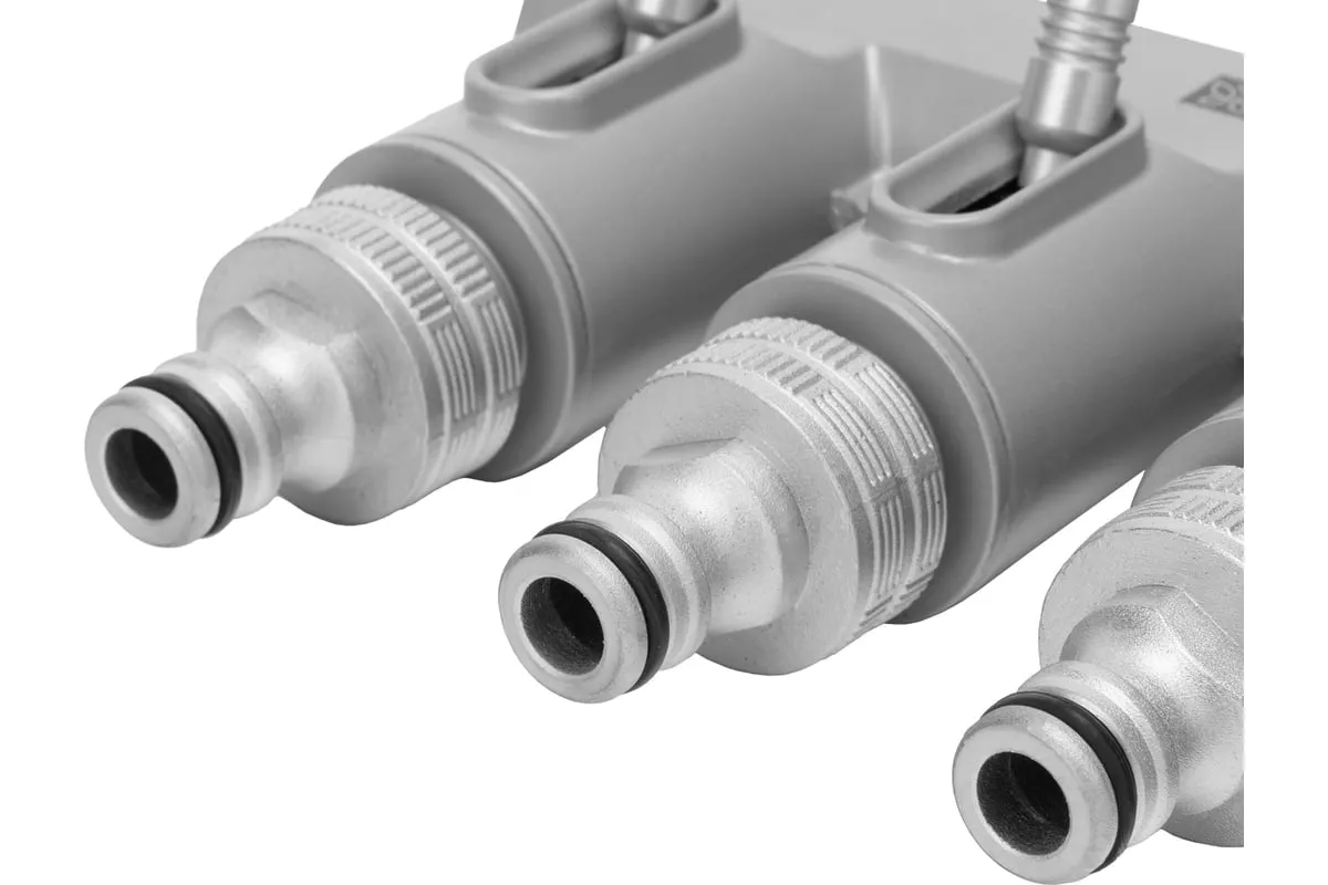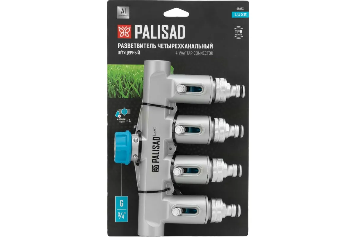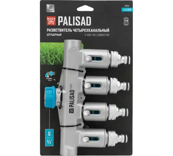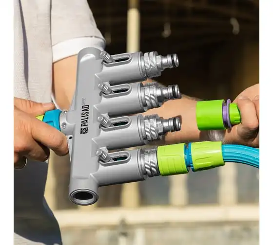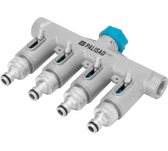 Четырехканальный штуцерный разветвитель Palisad LUXE 65833 с внутренней резьбой 3/4", из алюминия, предназначен для разделения водопроводной магистрали. Его устанавливают на магистральный отвод или резьбовой кран либо подключают к линии через адаптер. Соединяется со шлангами при помощи адаптеров. Поможет смонтировать надежную систему полива на дачном участке.