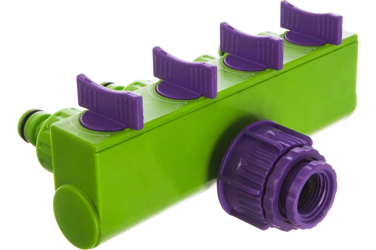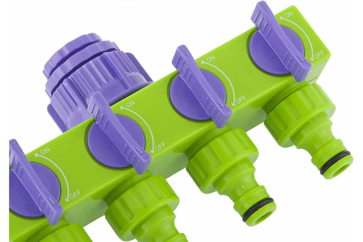 Регулируемый четырехканальный разветвитель Palisad 66425 подключает 4 магистрали к водопроводному отводу или крану диаметром 1/2 или 3/4 дюйма. Переходник входит в комплект. Разветвитель позволяет использовать шланги разного диаметра и будет полезен для организации системы орошения на участке большой площади.