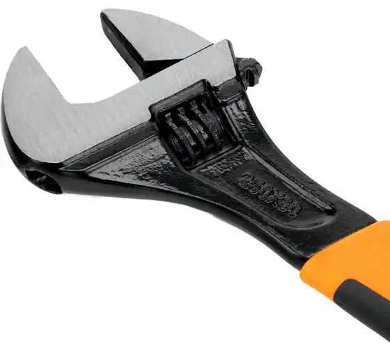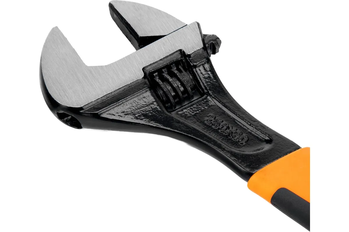 Разводной ключ 250 мм двухкомпонентная рукоятка SPARTA 15543 - универсальный инструмент с изменяемым расстоянием между губками. Используется при монтажных и демонтажных работах. Нанесенное фосфатированное покрытие дает инструменту защиту от коррозии. Шкала позволяет с точностью определить размеры развода губок.
