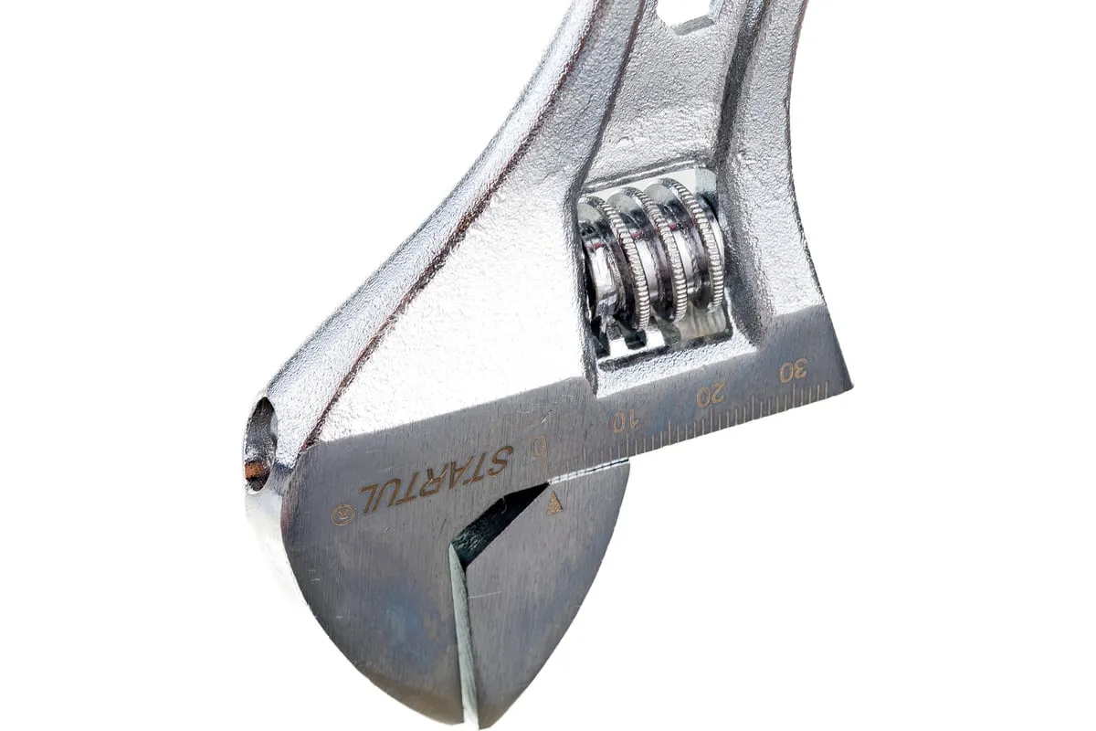Ключ STARTUL разводной ST4018-25 имеет винт плавного хода. Это позволяет работать с крепежом различных размеров.