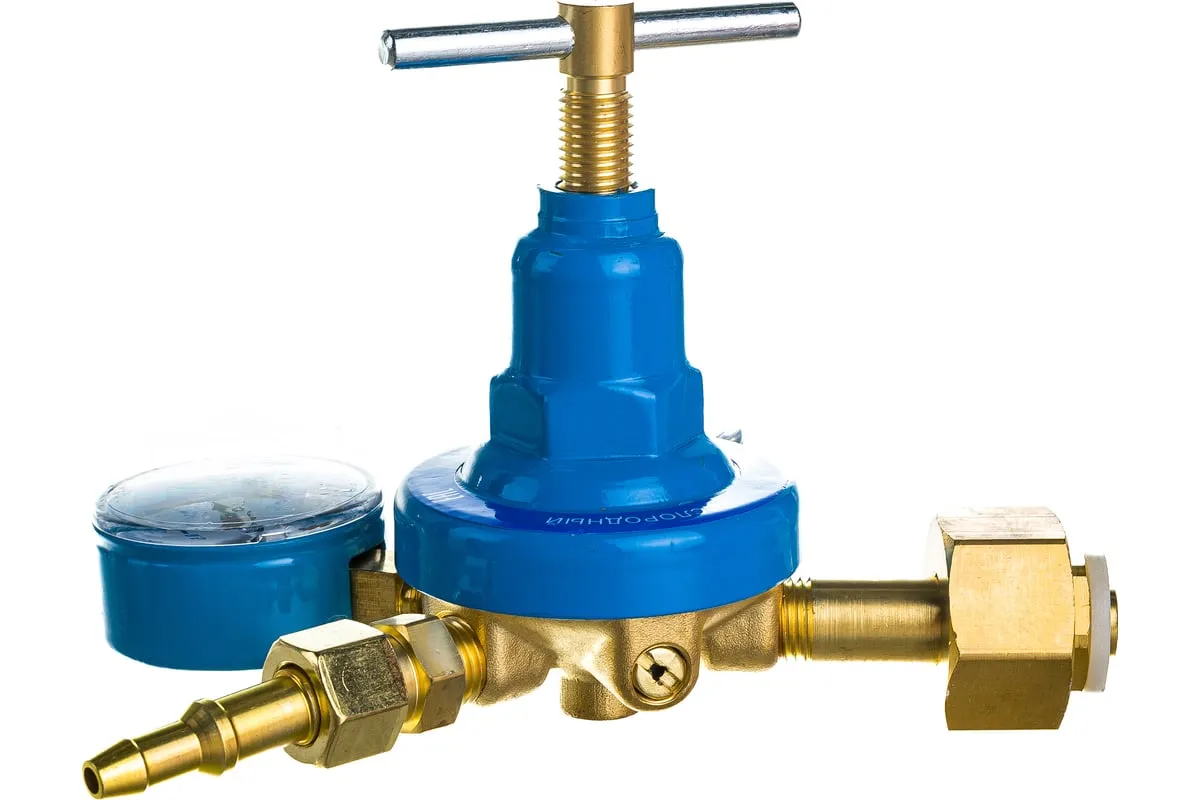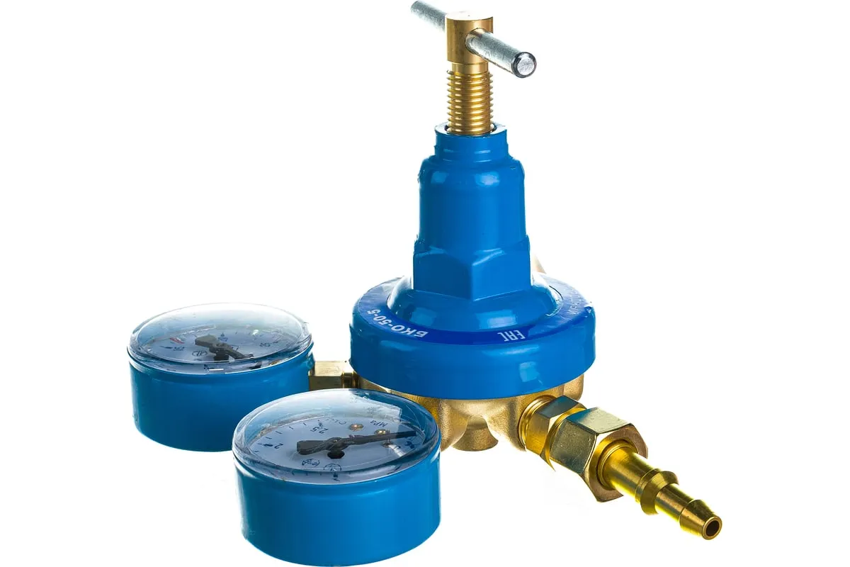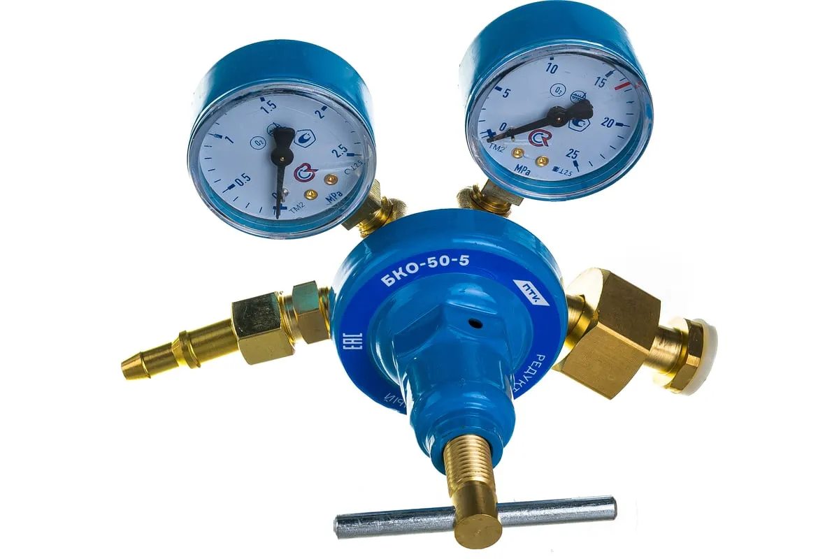 Редуктор кислородный БКО-50-5 ПТК 00000025590 предназначен для понижения давления газа, поступающего из баллона, и автоматического поддержания постоянного расхода газа на выходе. Оснастка комплектуется двумя манометрами.