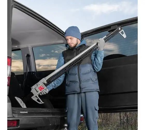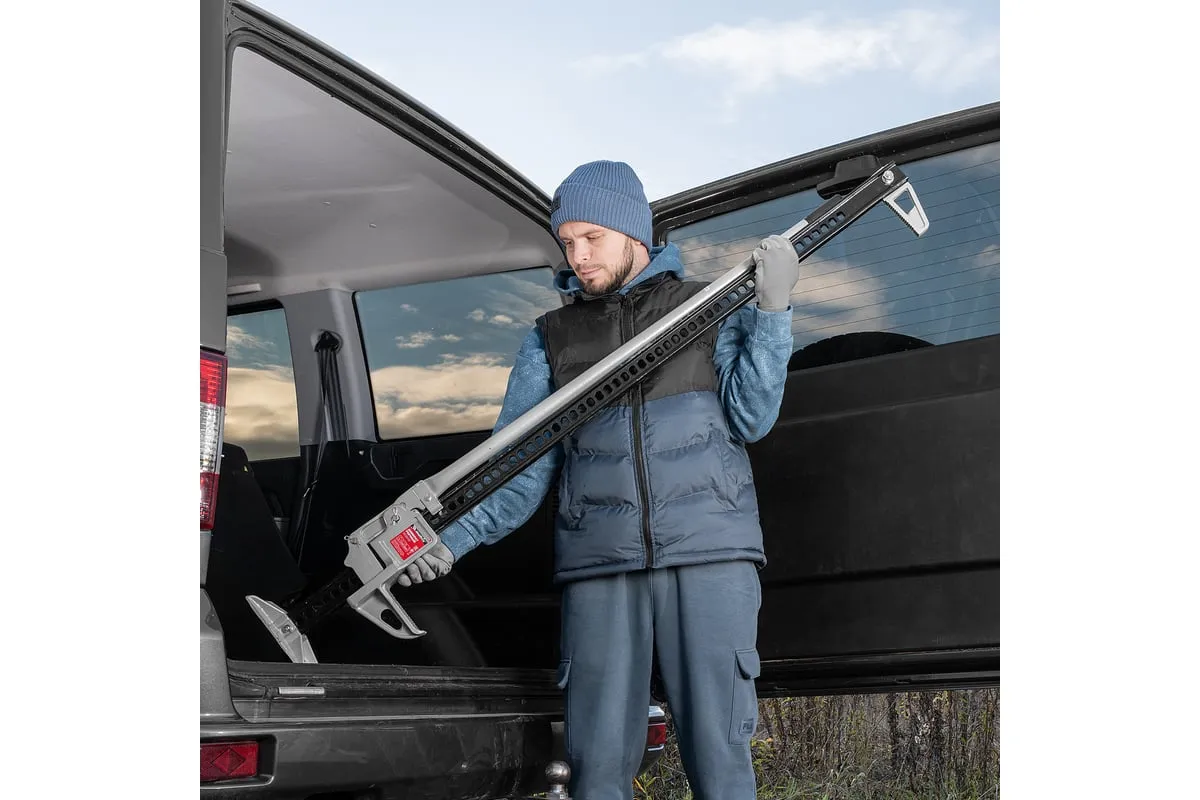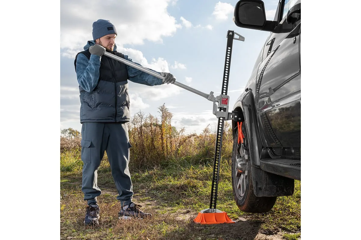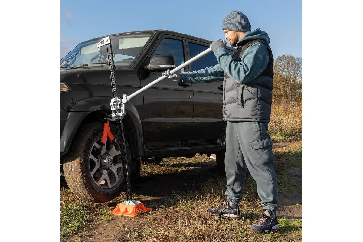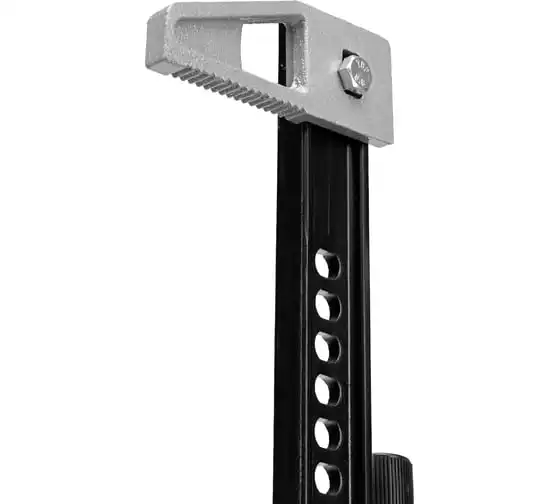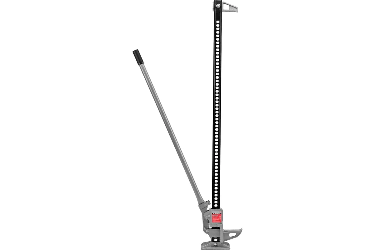Реечный домкрат Matrix High Jack 505195 позволяет поднимать внедорожники и грузовики весом до 3 т на высоту 135-1315 мм. Пригодится во время ремонта автомобилей. Несущая рейка дополнена зацепной петлей, поэтому домкрат можно использовать как ручную лебедку или стягивающее устройство.