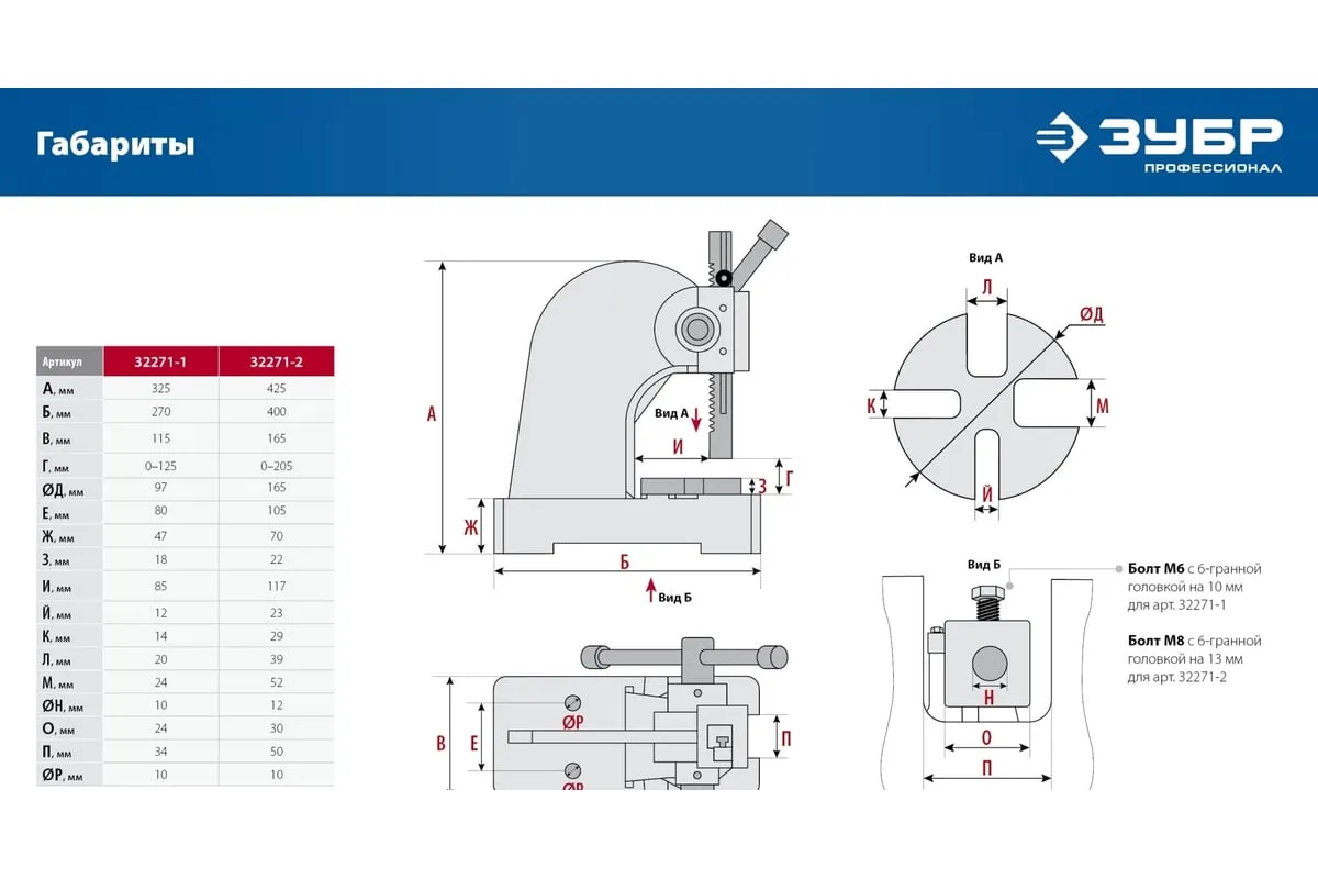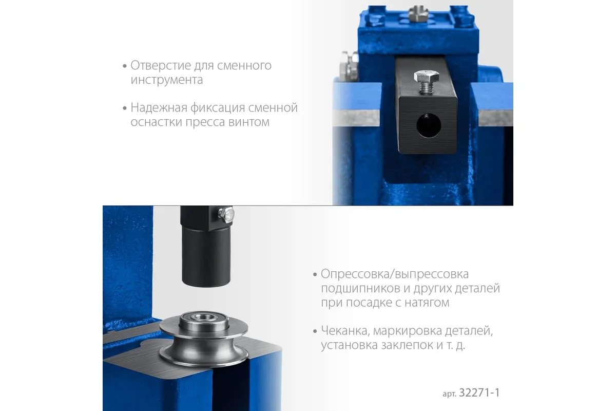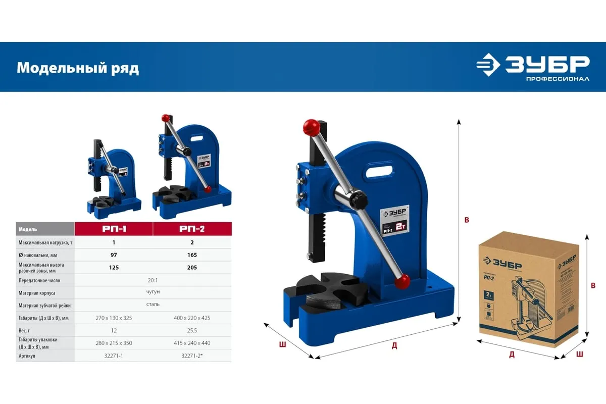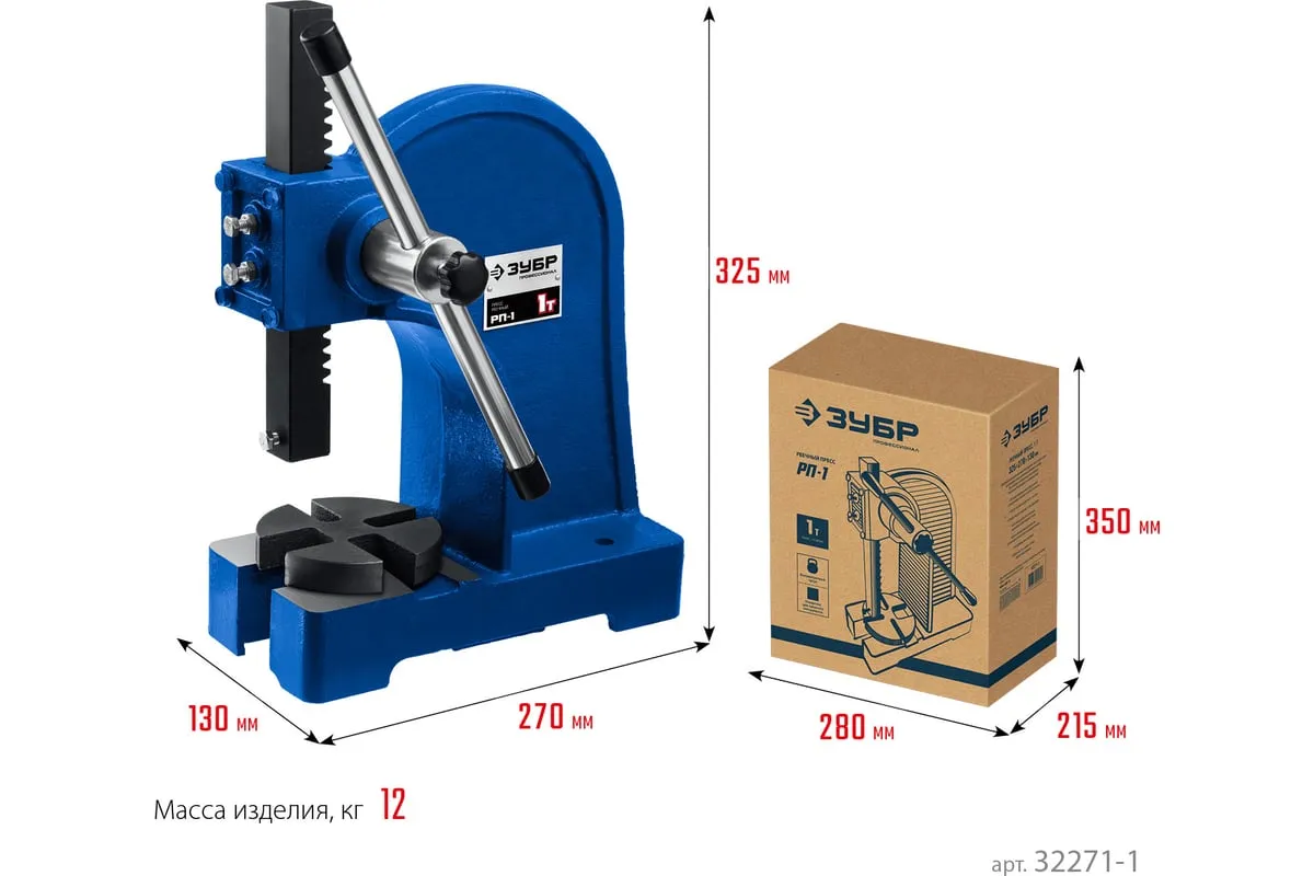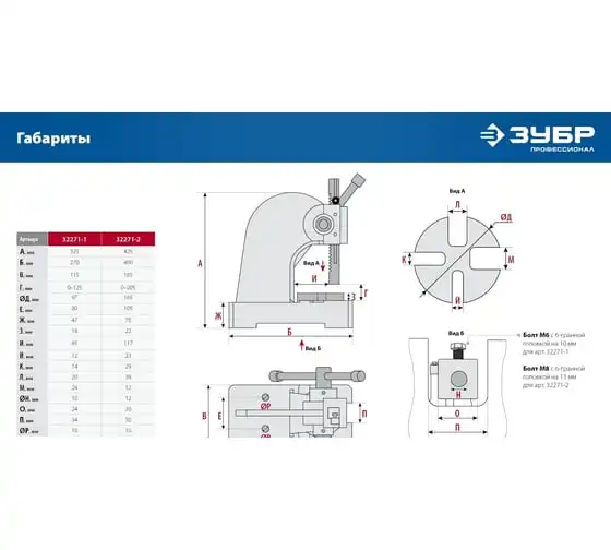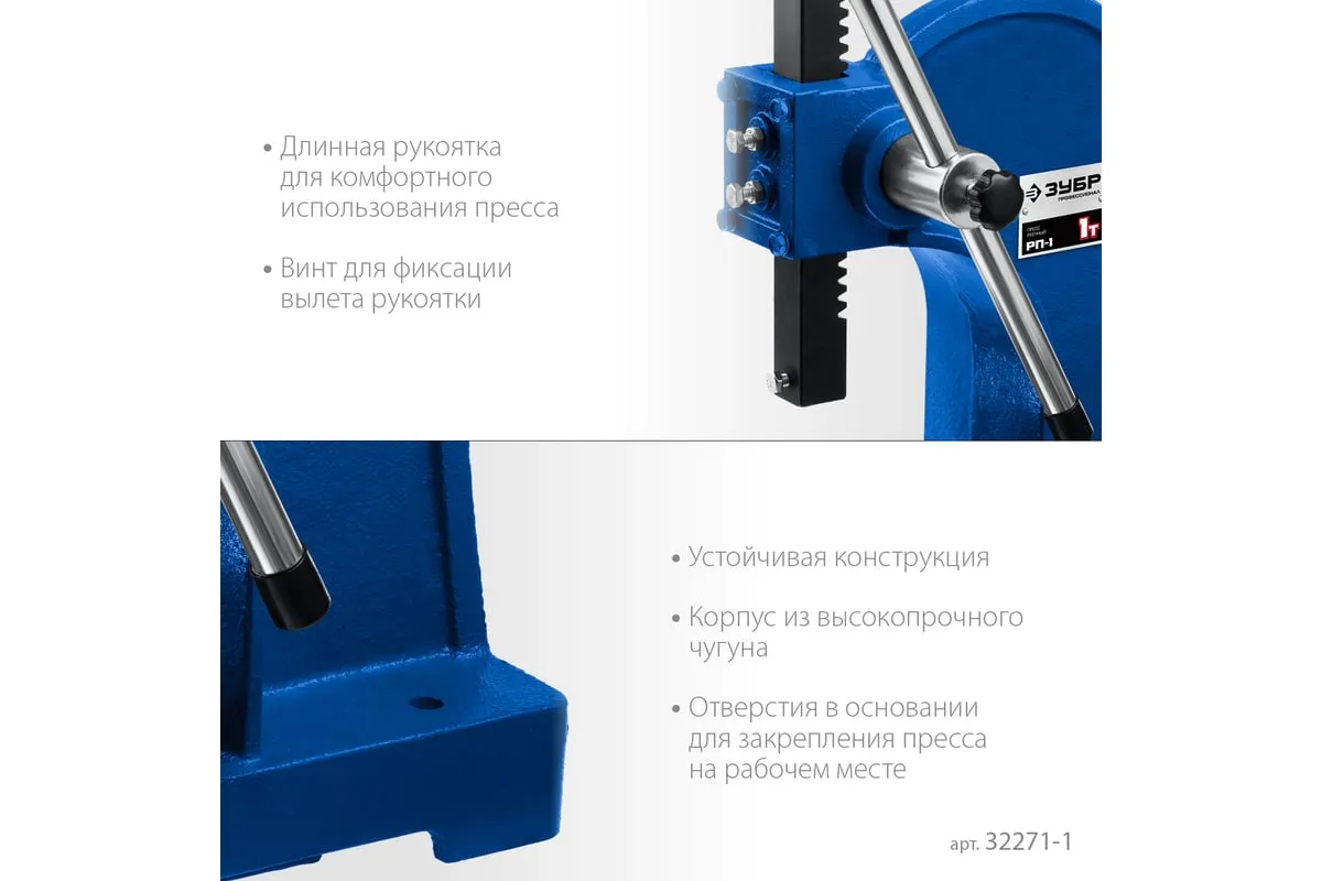 Реечный пресс ЗУБР РП-1 1 т 32271-1 предназначен для выпрессовывания подшипников, втулок и различных других деталей небольшой высоты. Высочайшая точность выполнения работы. Корпус из высокопрочный чугуна. Зубчатая рейка изготовлена из высококачественной стали. Рабочий стол имеет 4 паза различной ширины, позволяя выбрать оптимальный подход к работе в зависимости от детали.