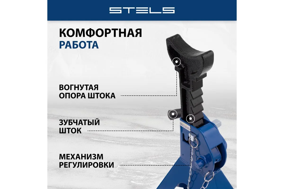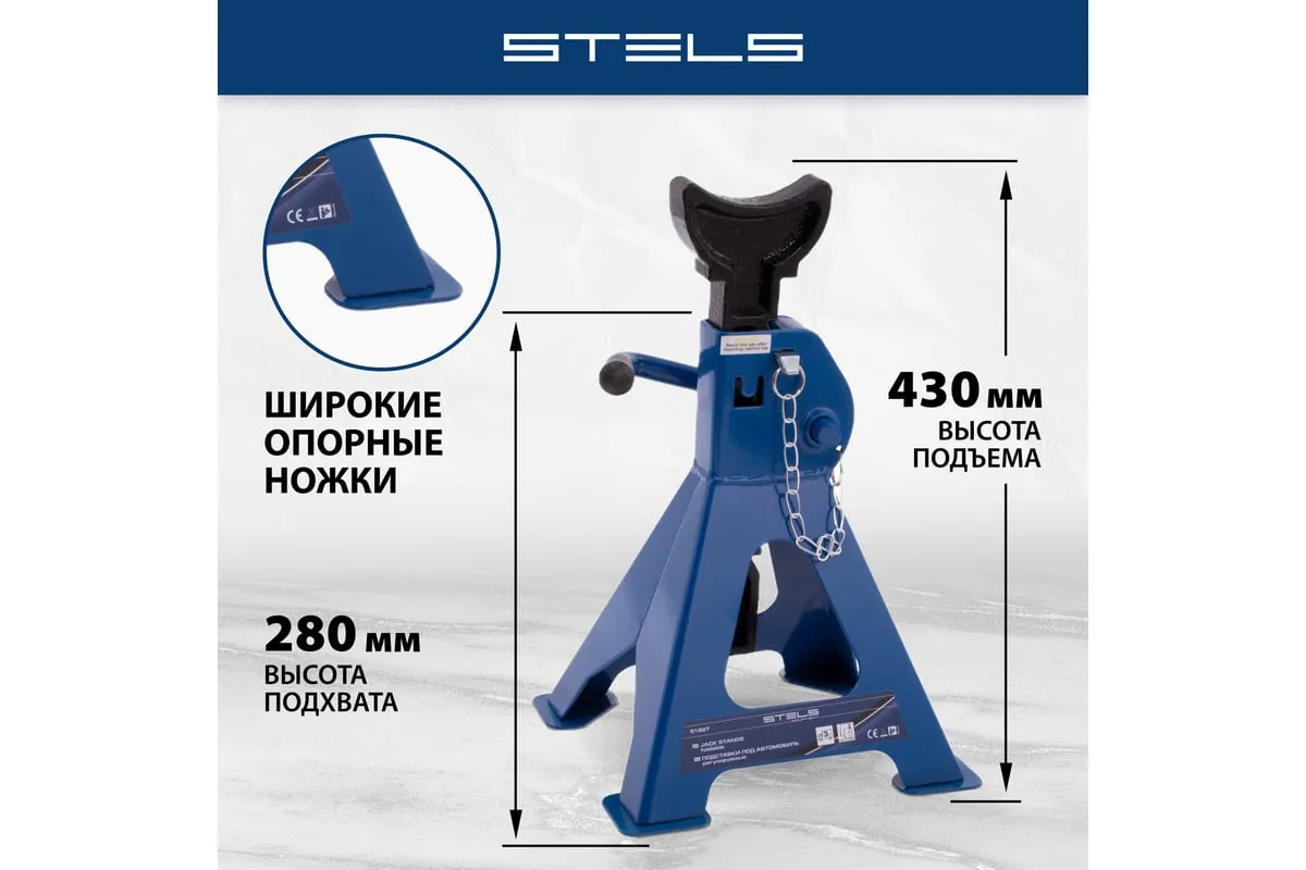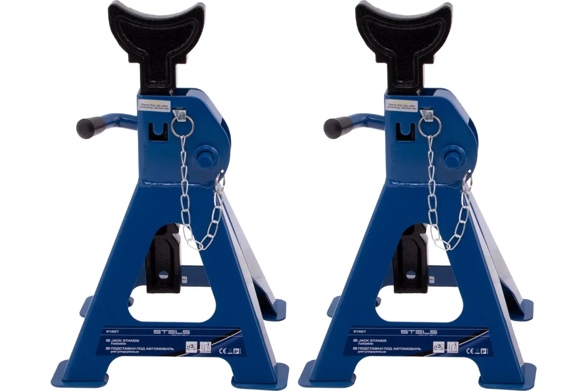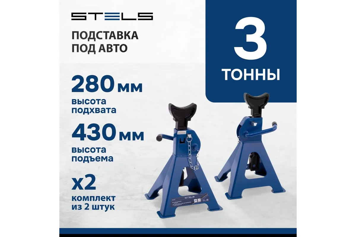 Регулируемые подставки под автомобиль 3 т STELS 51627 предназначены для надежной фиксации и страховки автомобиля от падения при проведении шиномонтажных и ремонтных работ. Изделия используются как автолюбителями, так и профессионалами на СТО и в шиномонтажных мастерских.