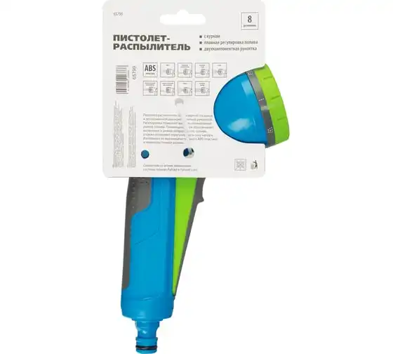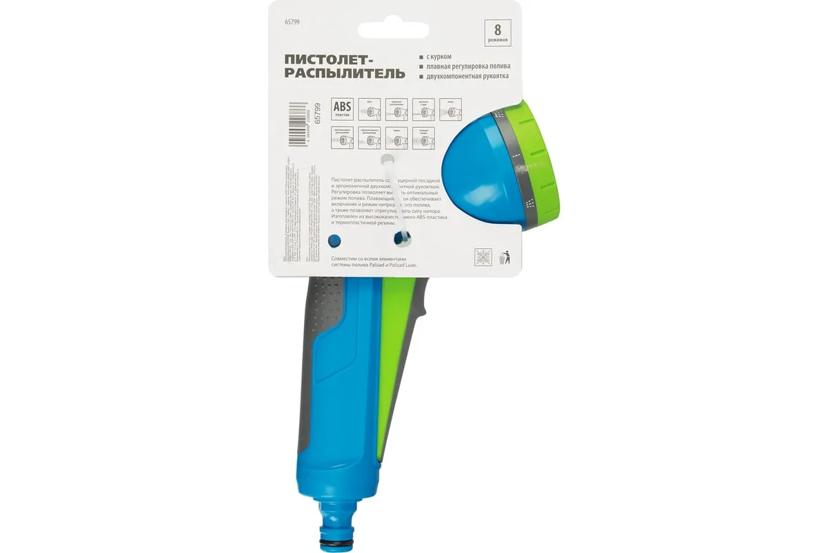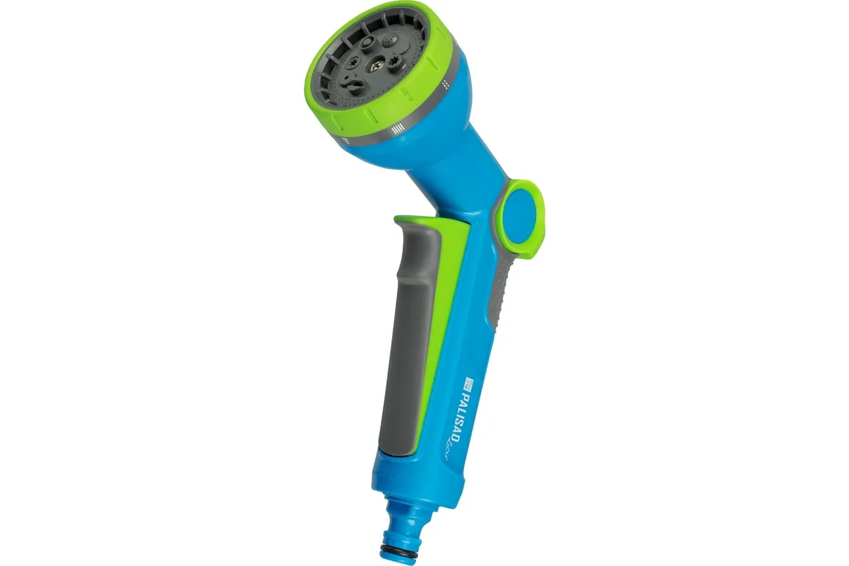 Пистолет-распылитель с 8 режимами работы присоединяется к любым поливочным системам ТМ Palisad и Palisad Luxe для осуществления ручного орошения растений на участке, а также мытья дорожек и садовых принадлежностей. Он поможет садоводам и работникам коммунальных служб оросить газон, растения на участке и в парке и выполнить другие задачи. 8 режимов распыления позволят выбрать необходимый тип струи для полива различных растений.