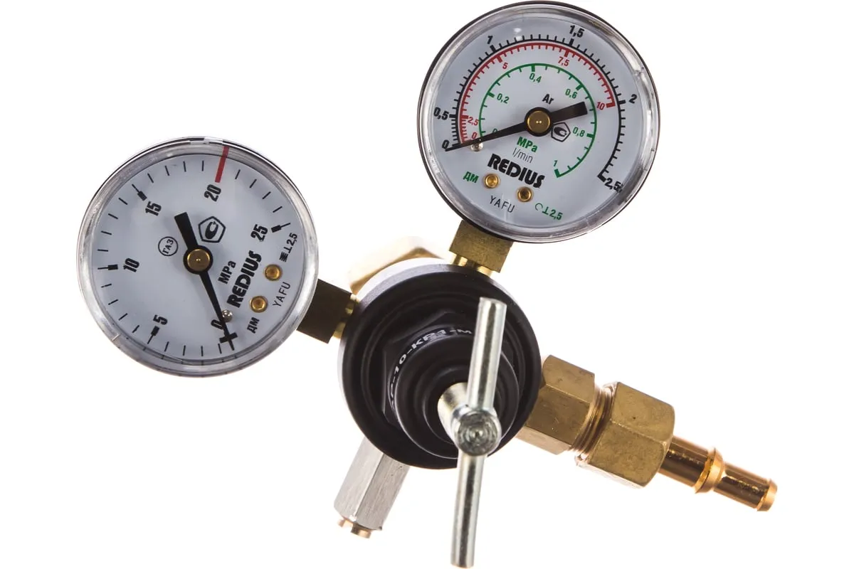 Регулятор аргоновый АР-10-КР1-м REDIUS 055051 оснащен манометрами высокого и низкого давления (позволяет контролировать расход рабочего газа). Конструкция устройства основана на осевой схеме, что позволило значительно уменьшить размеры при сохранении всех рабочих параметров (на уровне крупногабаритных газовых редукторов). Регулятор изготовлен из высокопрочного пластика, не подвержен вредным воздействиям грязи, влаги, а также, непосредственно, аргона.