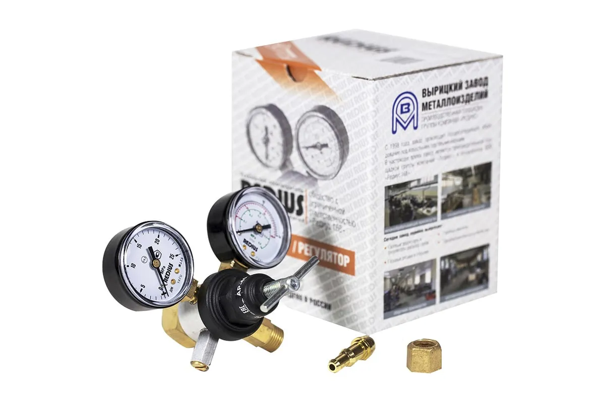 Регулятор аргоновый АР-40-КР1 REDIUS 055031 совместим со всеми газовыми баллонами, имеющими выходное соединение G 3/4". Установка и эксплуатация данного устройства не требует от пользователя каких-либо специальных знаний или умений. Регулировка давления осуществляется вручную с помощью удобной Т-образной рукоятки. Расход воздуха поддерживается автоматически, что удобно при проведении различных газосварочных работ.