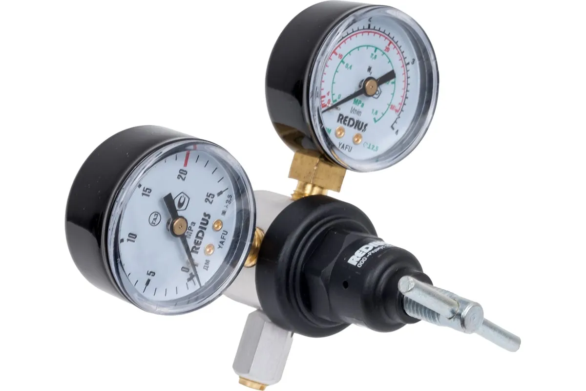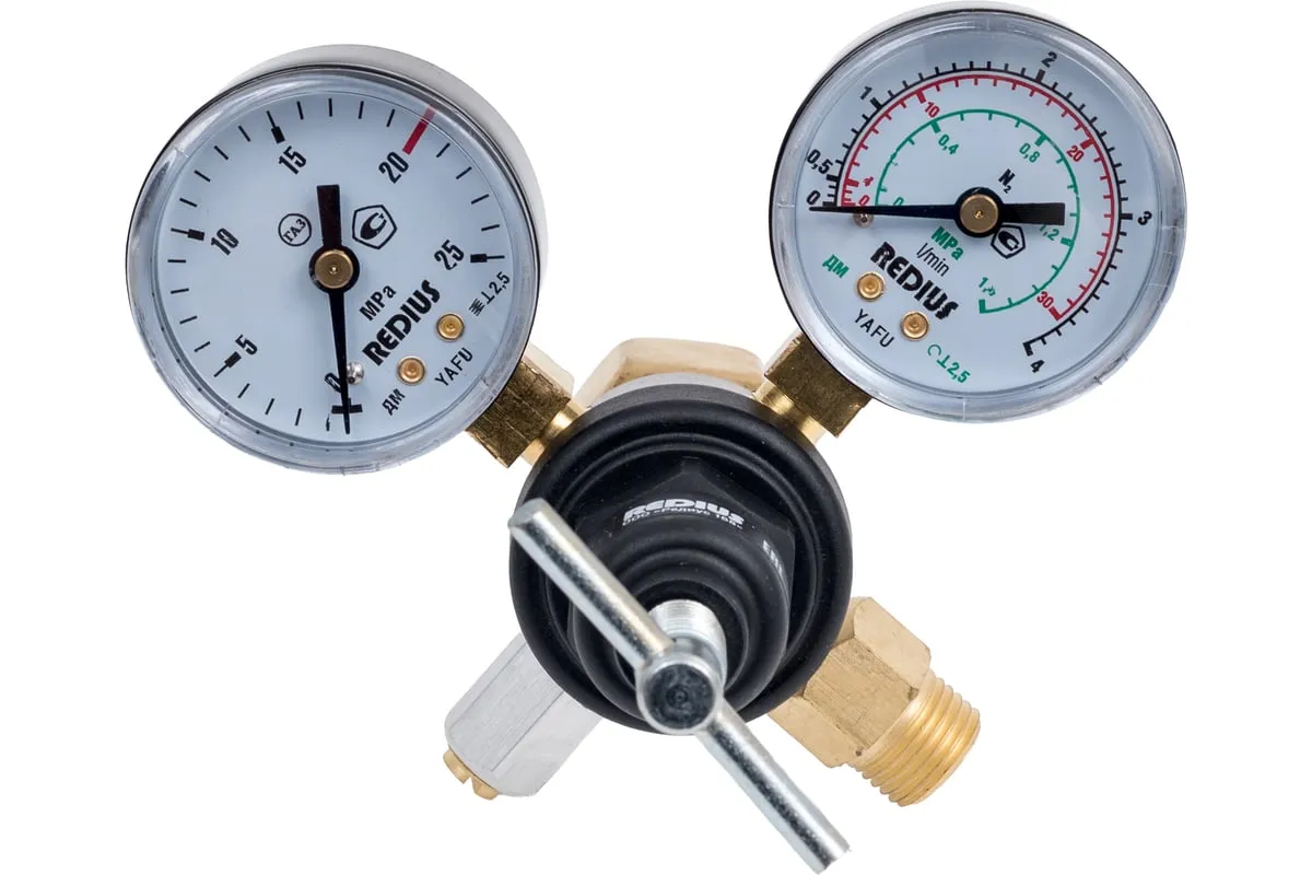 Регулятор азотный А-30-КР1-М REDIUS 054011 прост в установке и в использовании. С помощью данного устройства можно эффективно отрегулировать поступающее из баллона давление, а также снизить его. Имеет одну ступень сжатия, что позволяет максимально уменьшить показатели рабочего давления газа. Приспособление обладает небольшими размерами и низким весом, поэтому его удобно хранить и транспортировать с одного рабочего места на другое. Оснащен двумя манометрами, один из которых имеет две шкалы контроля - выходное давление в МПа и расход азота в л/мин.