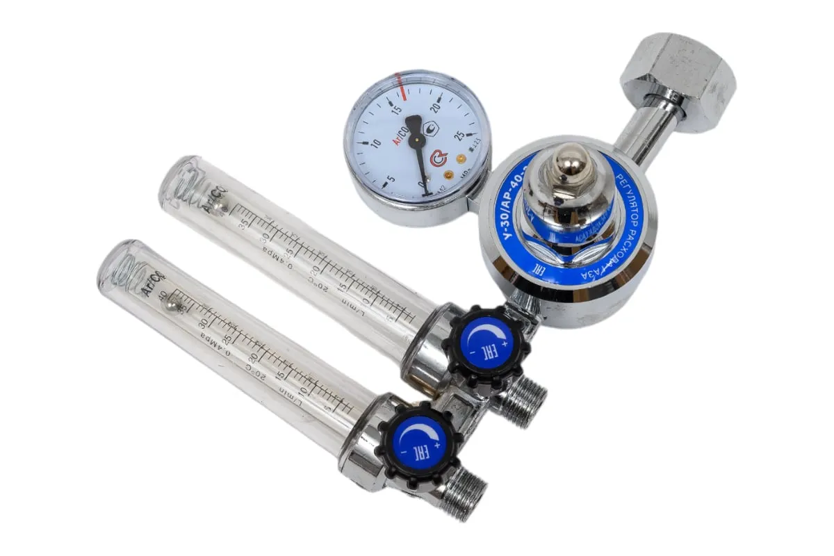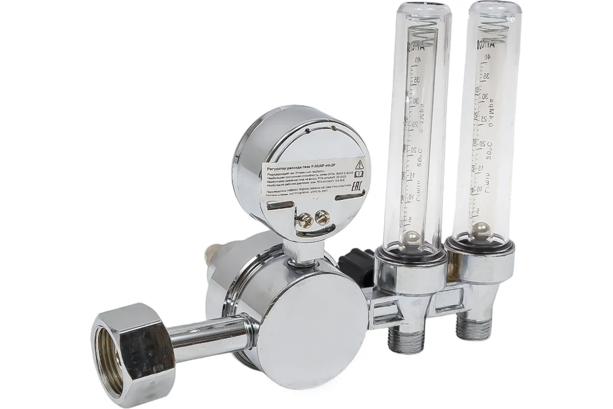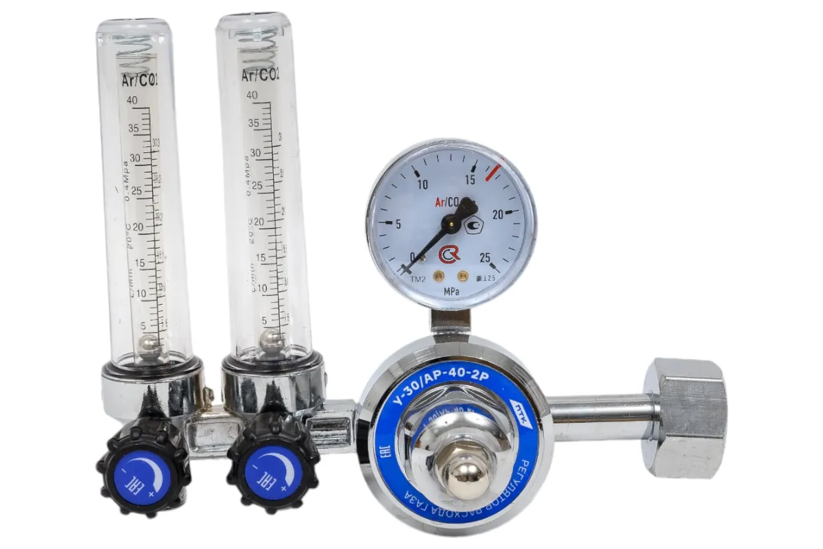 Регулятор расхода газа У-30/АР-40-2Р ПТК 00000029047 предназначен для понижения давления газа, поступающего из баллона, и автоматического поддержания постоянного расхода газа на выходе. Оснастка комплектуется одним манометром и двумя ротаметрами.
