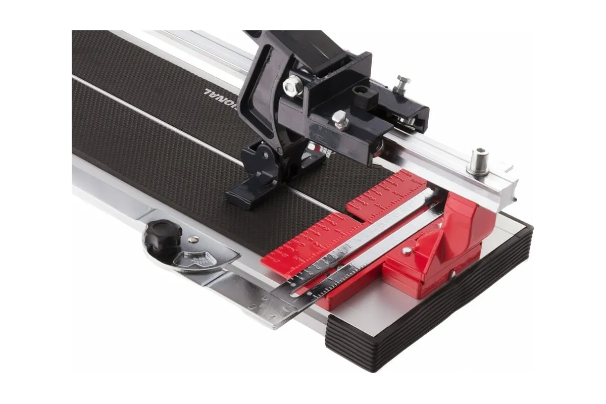 Рельсовый плиткорез 500 мм MTX PROFESSIONAL 87687 - это усовершенствованный вид приспособления для возможности выполнения легкой и точной резки кафельной плитки длиной до 500 мм. Инструмент оснащен всего одним направляющим рельсом и несущей кареткой, которая прочно закреплена на этом рельсе с двух сторон и перемещается за счет шарикоподшипникового механизма.