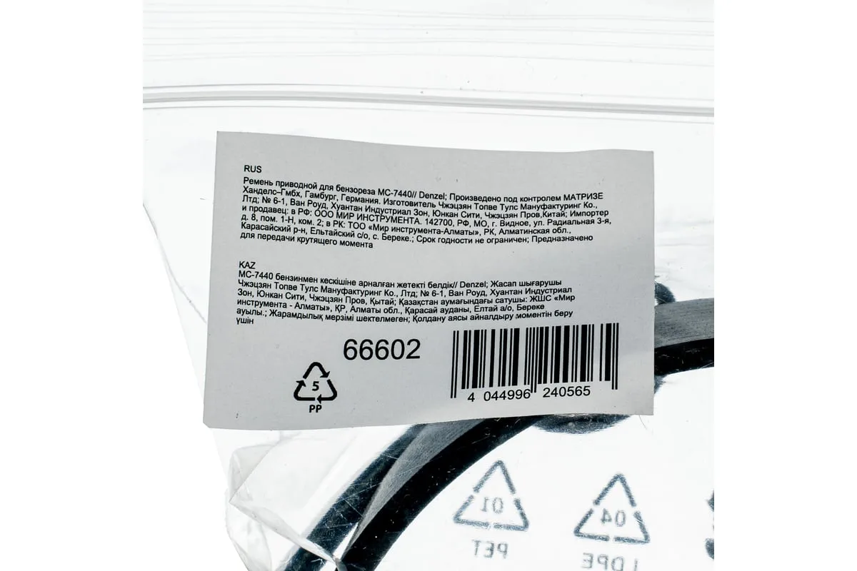 Приводной ремень Denzel 66602 передает крутящий момент с выходного вала, обеспечивая эффективное функционирование бензореза Denzel МС-7440 (арт. 66302). Позволяет восстановить работоспособность техники в случае растяжения или обрыва установленного ремня.