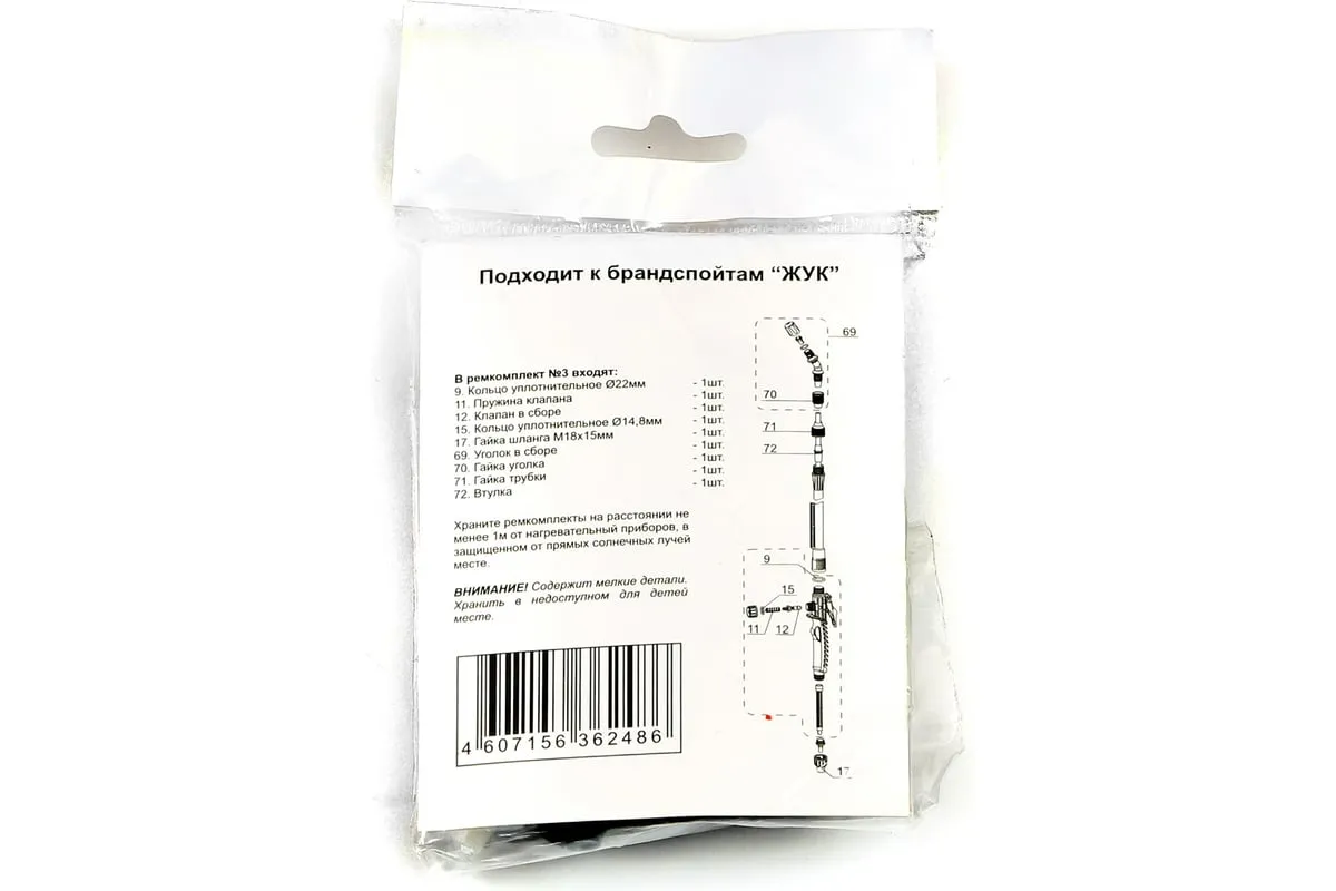 Ремкомплект 3 для брандспойтов Жук 4607156362486 подходит для брандспойтов ко всем опрыскивателям "Жук", выпущенных с 2008 года. Приспособления используются для выполнения ремонтных работ брандспойтов. Набор необходимо хранить в прохладном месте, не подвергая воздействию солнечных лучей.