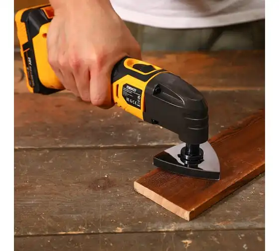 Реноватор DEKO DKOT20 Multi предназначен для строительных работ (резка, шлифование) с такими материалами как дерево, металл. Хорошо подходит для обработки небольших участков особенно углов и труднодоступных мест. Он незаменим как вспомогательный строительный инструмент на финальных этапах работы или при переделке. Электронная регулировка частоты колебаний позволяет подобрать оптимальный режим для каждого вида работы и материалов. Патрон универсальной системы OIS с бесключевой фиксацией.