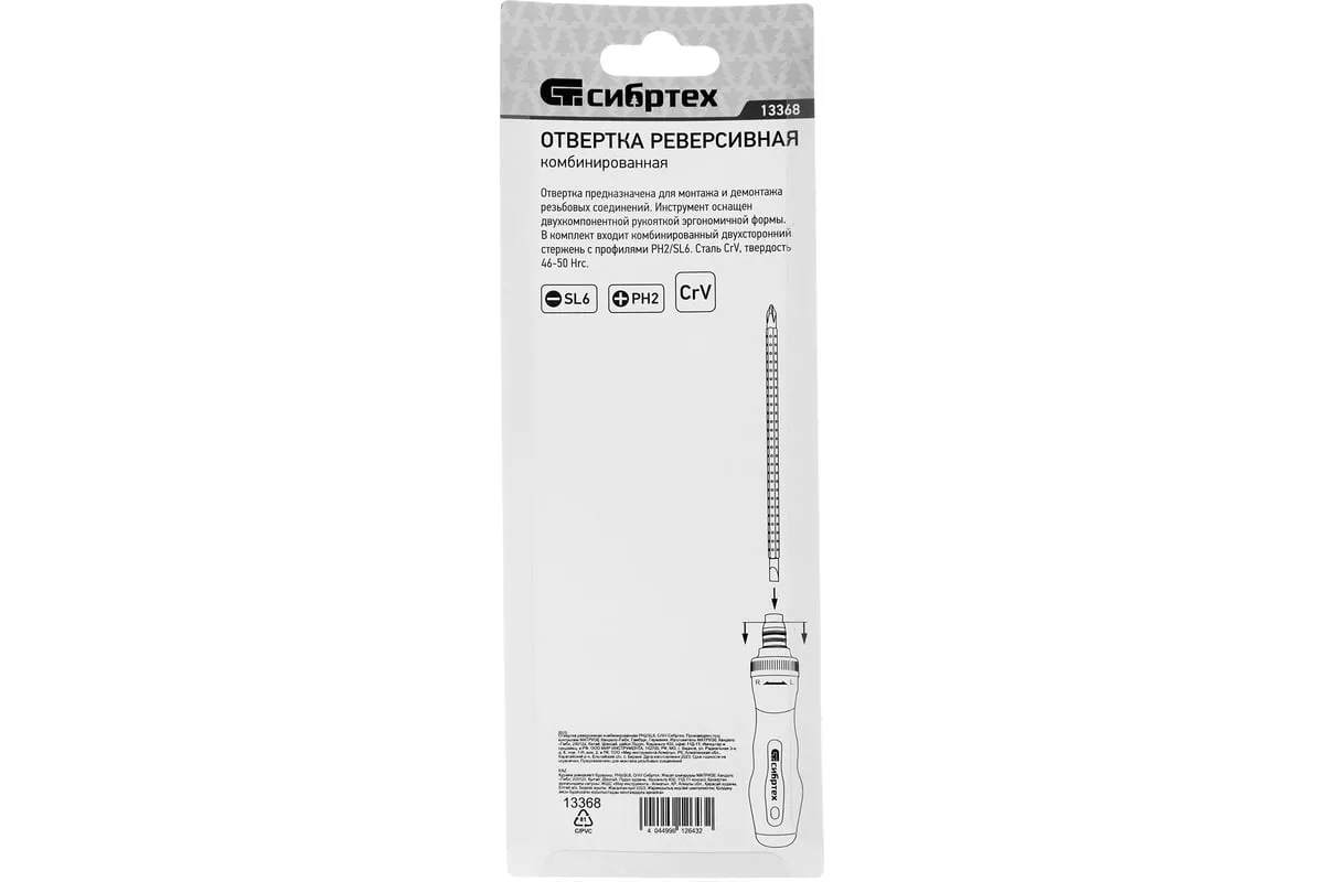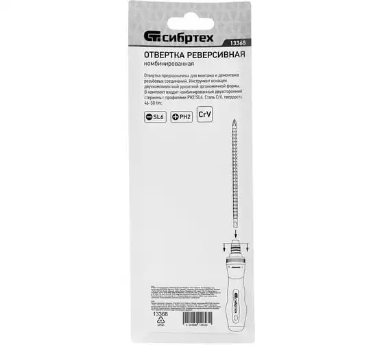 Реверсивная комбинированная отвертка СИБРТЕХ PH2/SL6 13368 - это удобный инструмент для монтажа и демонтажа крепежных соединений. Двухсторонний стержень изготовлен из хромованадиевой стали. Двухкомпонентная реверсивная рукоятка обеспечивает надежный захват и удобство использования.