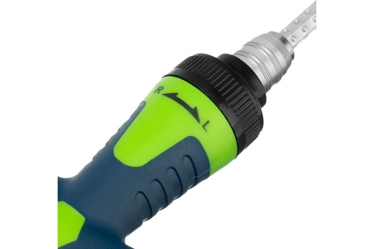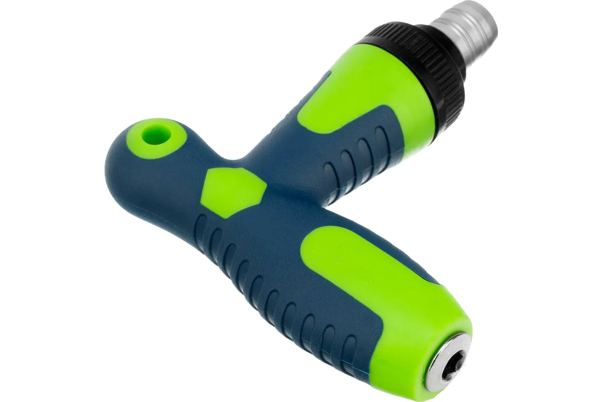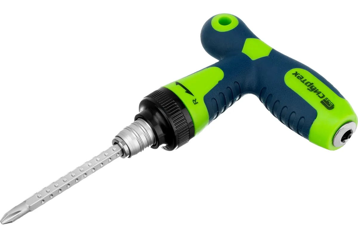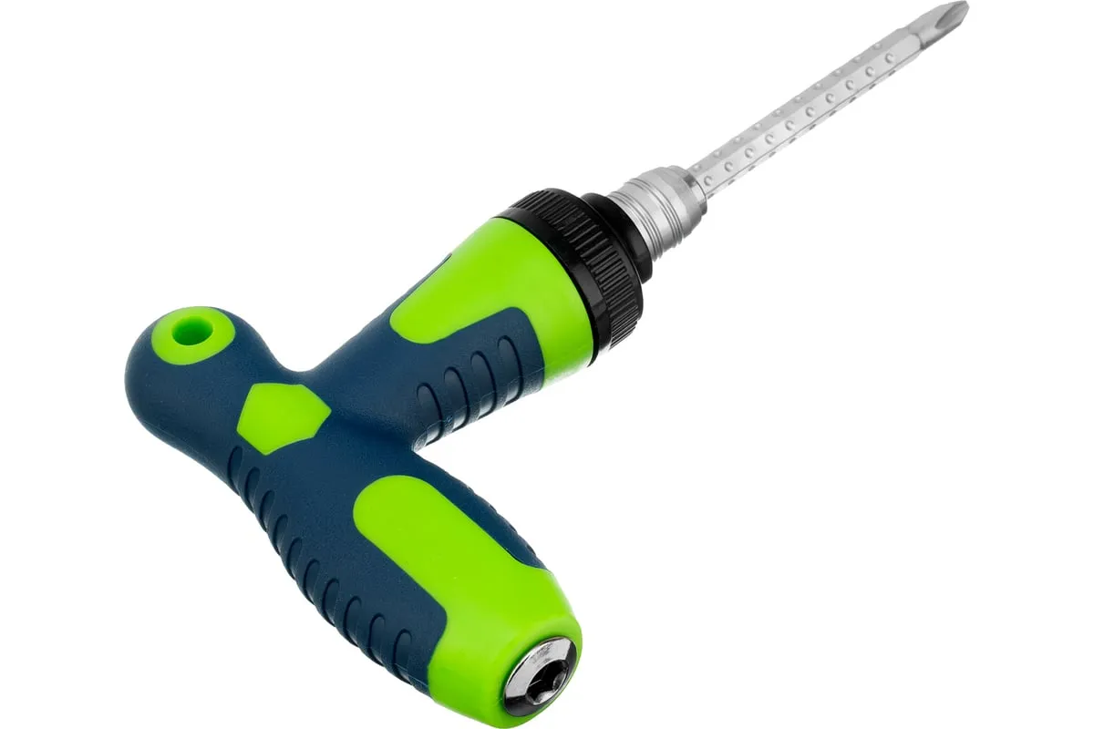 Реверсивная отвертка СИБРТЕХ Т-образная PH2/SL6 13364 представляет собой ручной инструмент с двухсторонним стержнем, который позволяет работать с крестовым и прямым шлицем. Стержень выполнен из хромованадиевой стали. Т-образная рукоятка обладает реверсивным механизмом и выполнена из двухкомпонентного материала.