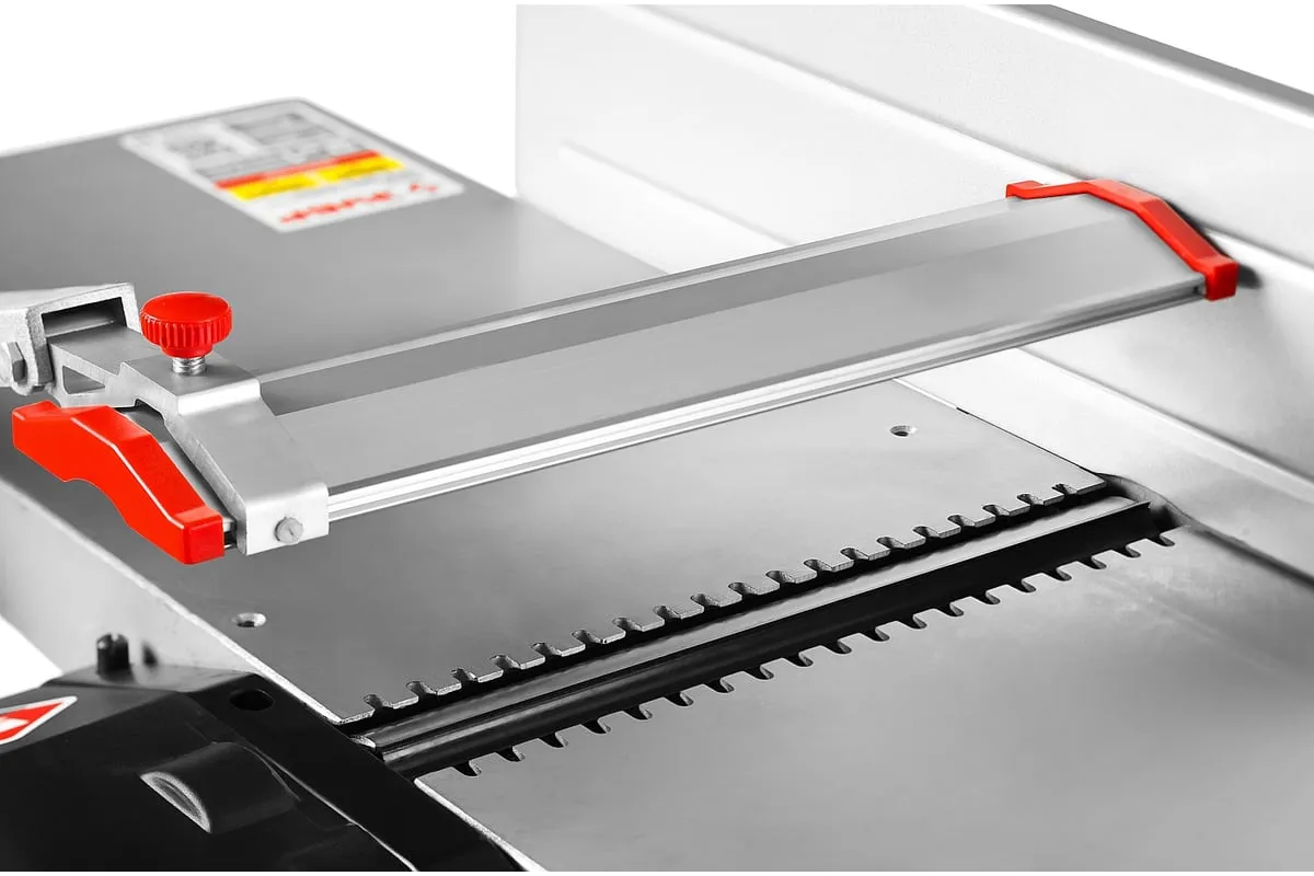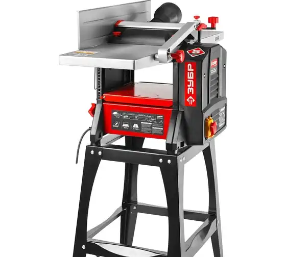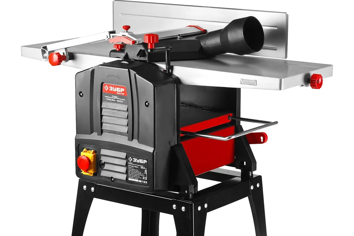 Рейсмусно-фуговальный станок ЗУБР МАСТЕР СРФ-254-1600С позволяет обрабатывать древесину методом строгания по плоскости, по ребру или по заданным размерам. Установка не доставляет сложностей в управлении, смена операций происходит легко и просто. Модель не требует специального технического обслуживания. Ременная передача и защита двигателя от перегрузок способствуют длительной бесперебойной эксплуатации станка. Деталь подается автоматически при этом скорость подачи составляет 6 метров в минуту. Благодаря двум стальным ножам устройство способно работать с древесиной как твердых, так и мягких пород. Гладкая поверхность рабочего стола облегчает подачу изделия в зону реза. Оборудование оснащается аспирационным отверстием диаметром 100 мм для пылеотведения.