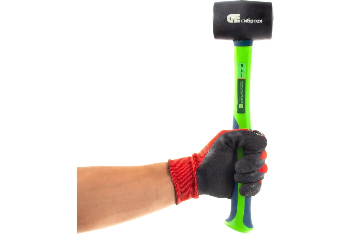 Резиновая киянка Сибртех 11164 из черной резины с фибергласовой рукояткой, 450 г, применяется при проведении монтажных, сборочных и кузовных работ, укладке плитки. Резиновый боек обладает высокими амортизирующими свойствами, что делает его оптимальным для работы с чувствительными к давлению материалами.