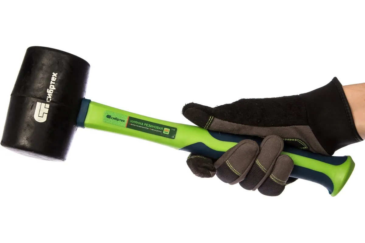 Резиновая киянка Сибртех 11165 из черной резины с фибергласовой рукояткой, 680 г, применяется при проведении монтажных, сборочных и кузовных работ, укладке плитки. Резиновый боек обладает высокими амортизирующими свойствами, что делает его оптимальным для работы с чувствительными к давлению материалами.