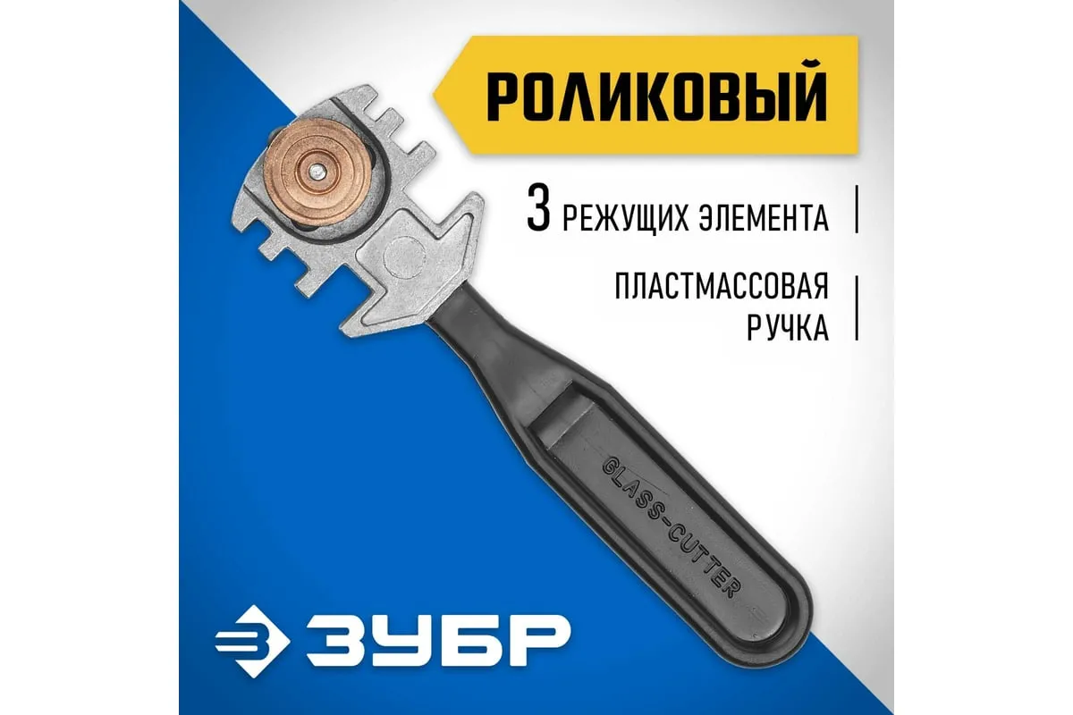 Роликовый стеклорез ЗУБР 3 режущих элемента пластмассовая рукоятка 3360_z01 предназначен для разрезания стекла разной толщины. Изделие имеет 3 режущих элемента, что позволяет производить эффективный рез. Удобная пластиковая ручка привносит дополнительный комфорт в работу оператора.