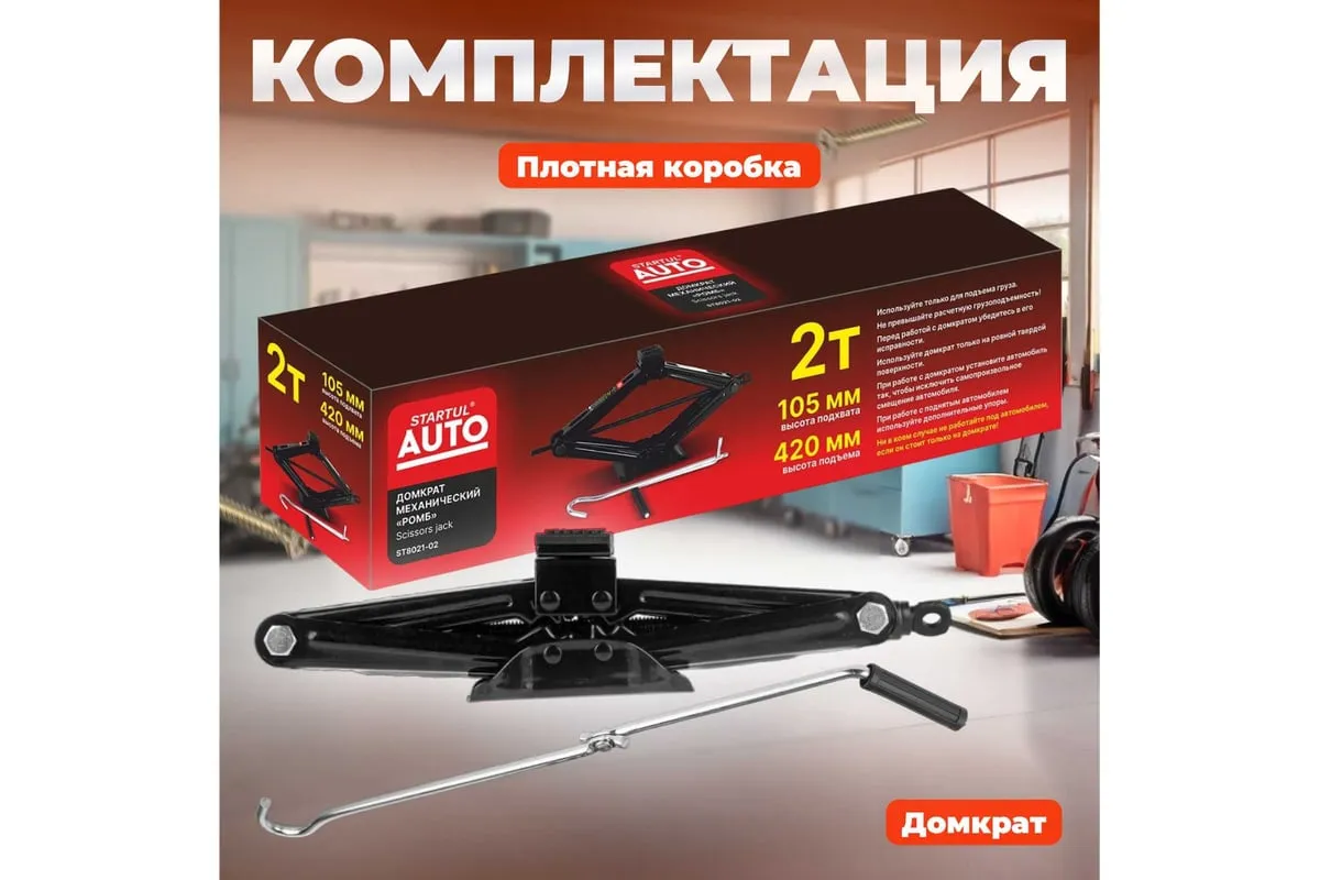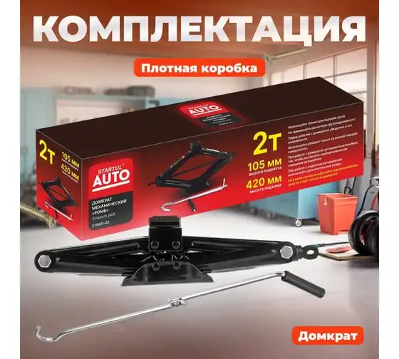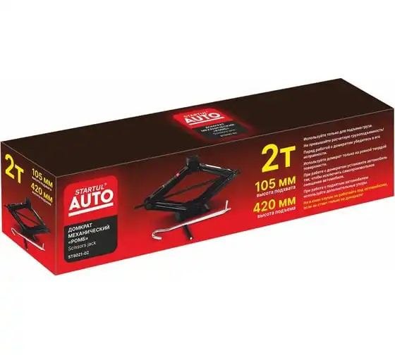 Ромбический домкрат STARTUL Auto 2 т ST8021-02 представляет собой грузоподъемный механизм, работающий на принципе шарнирного параллелограмма. Применяется для различных монтажно-демонтажных работ, поднятия автомобилей для замены колеса и мелких ремонтных работ. Отличается небольшим размером при внушительной высоте подъема. Благодаря своей мобильности и компактности, ромбические домкраты пользуются популярностью у автолюбителей.