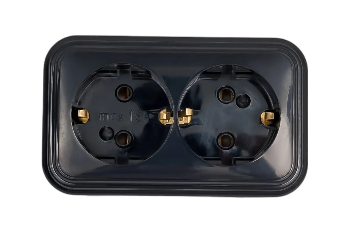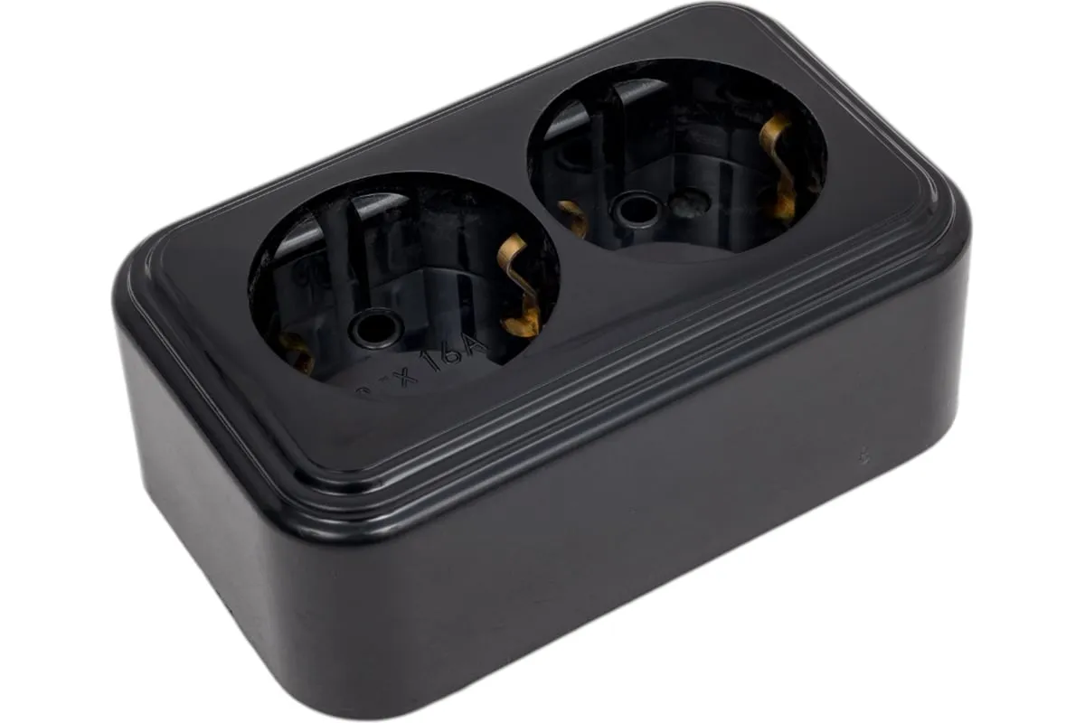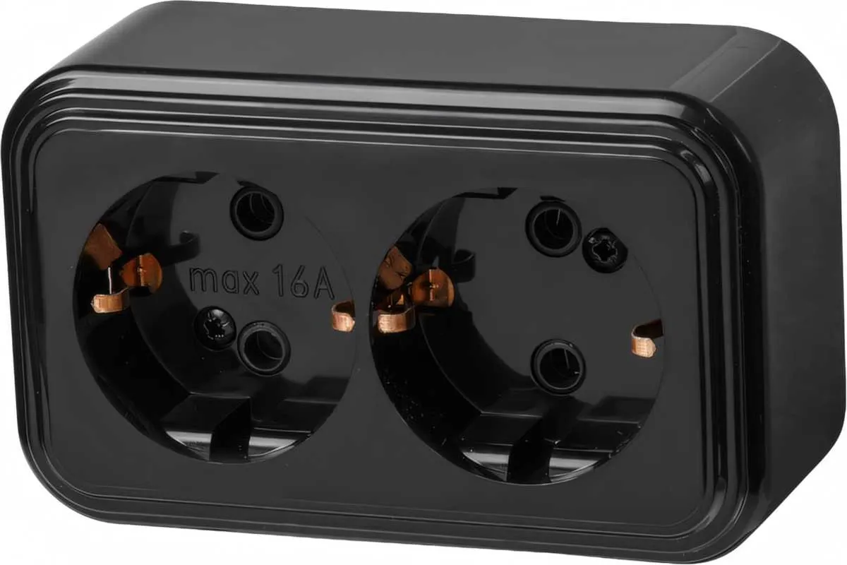 Розетка ЮПИТЕР двойная наружная с заземлением Стандарт черная JP7412-05
