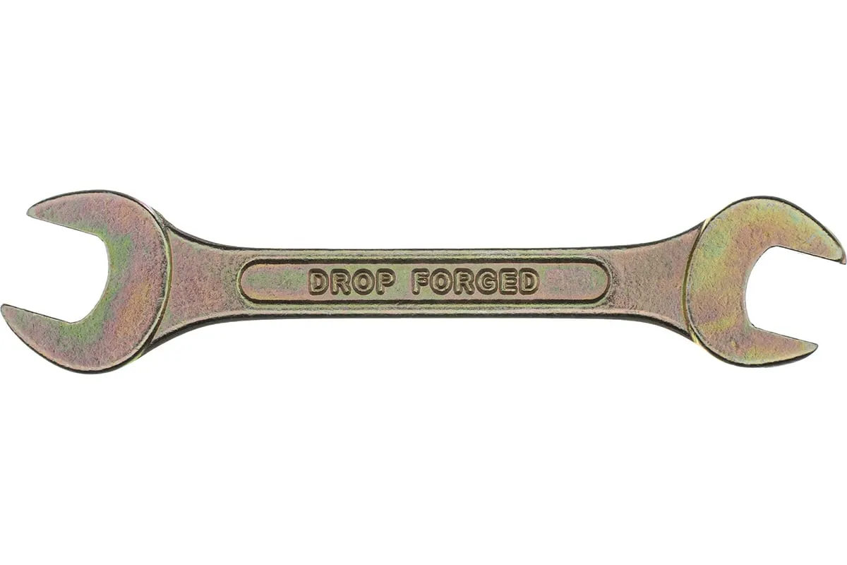 Рожковый ключ Сибртех 14304, 10 х 11 мм, с покрытием из желтого цинка, предназначен для закручивания и откручивания резьбовых крепежей с шестигранными головками. Имеет две рожковые части с размером зева 10 и 11 мм. Губки расположены под небольшим углом к оси тела ключа, что повышает удобство работы в ограниченном пространстве. Инструмент пригодится при проведении монтажных работ, сборке и разборке оборудования, для ремонта техники, а также будет полезен в быту.