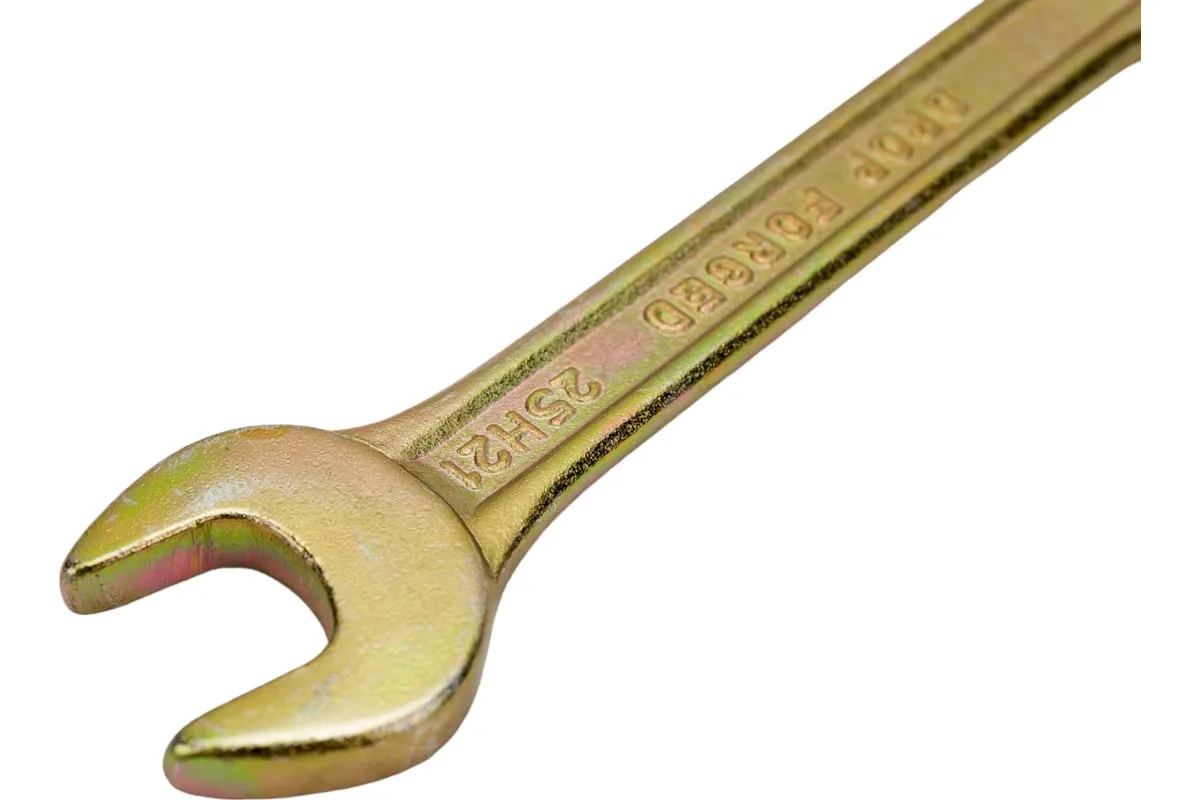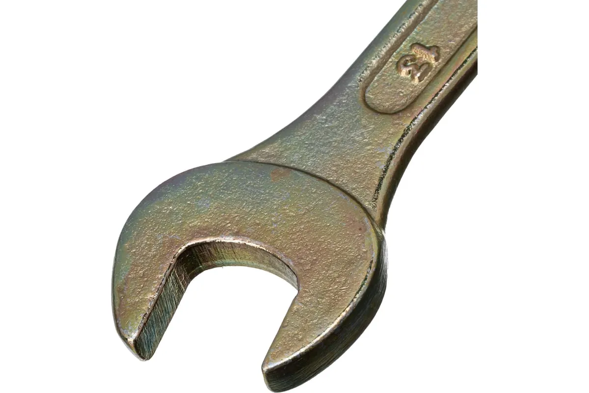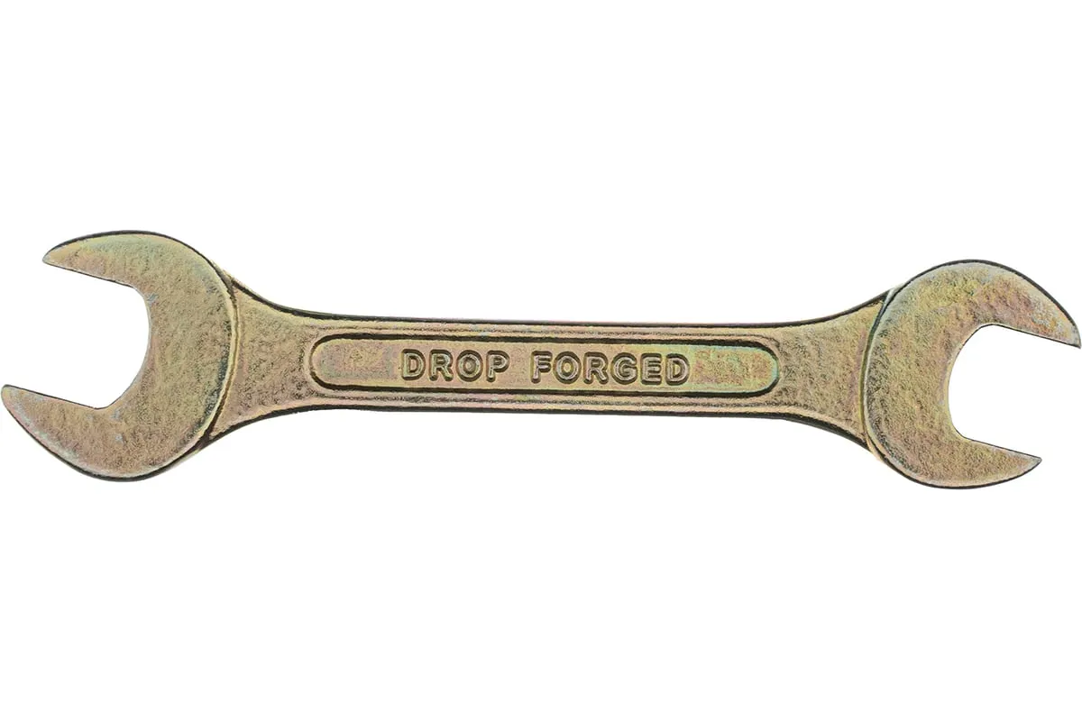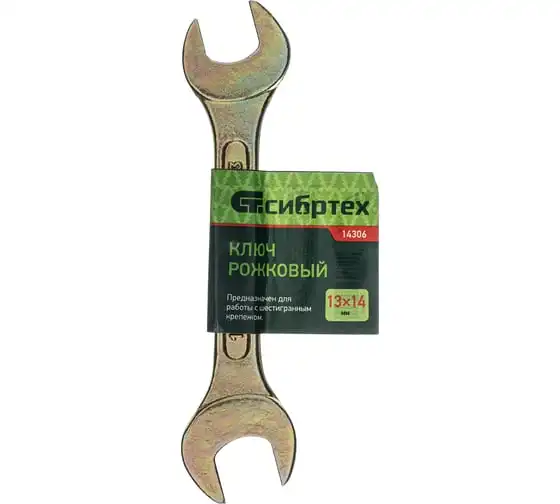 Рожковый ключ Сибртех 14306, 13 х 14 мм, с покрытием из желтого цинка, предназначен для закручивания и откручивания резьбовых крепежей с шестигранными головками. Имеет две рожковые части с размером зева 13 и 14 мм. Губки расположены под небольшим углом к оси тела ключа, что повышает удобство работы в ограниченном пространстве. Инструмент пригодится при проведении монтажных работ, сборке и разборке оборудования, для ремонта техники, а также будет полезен в быту.