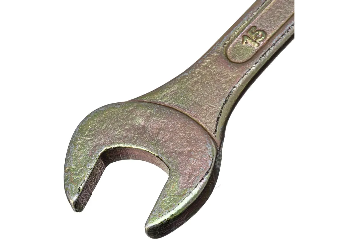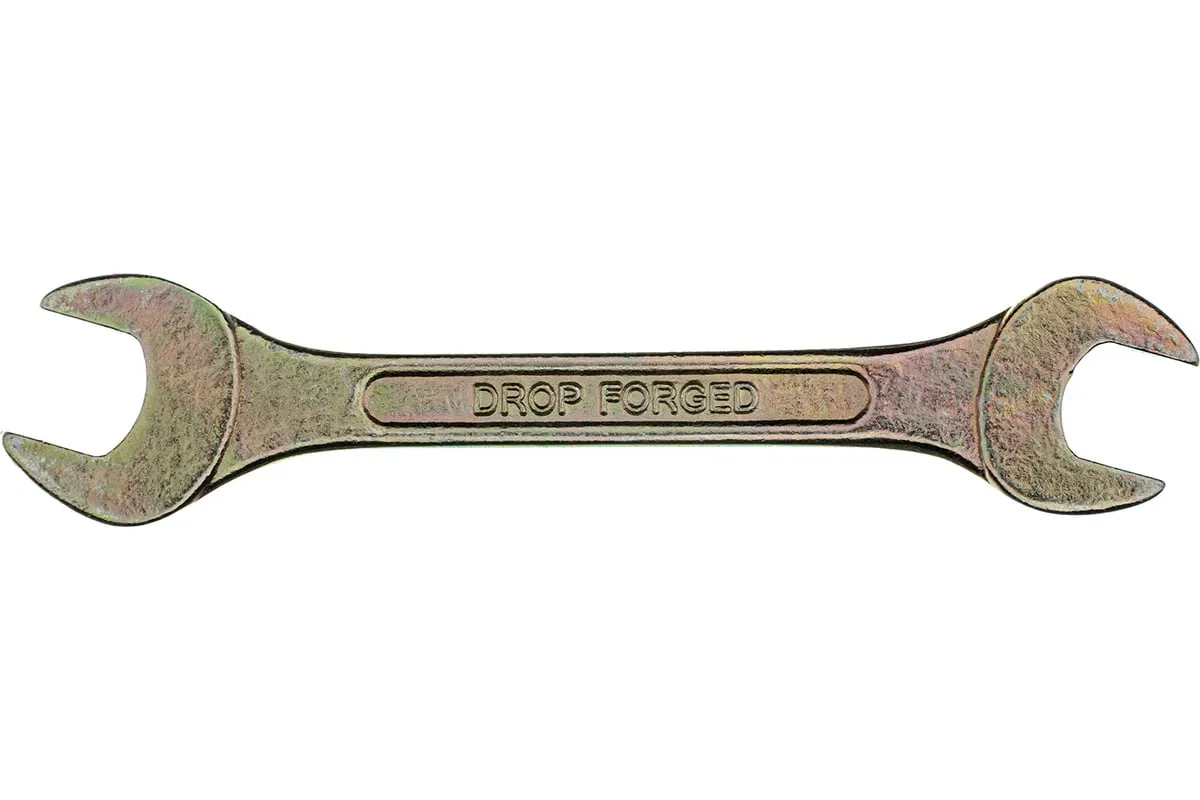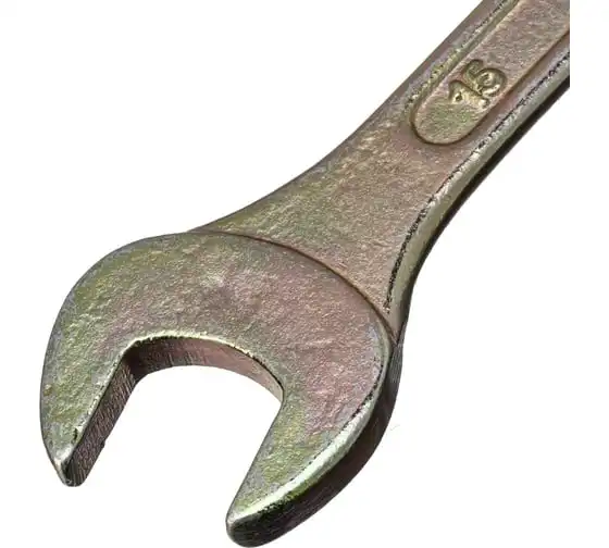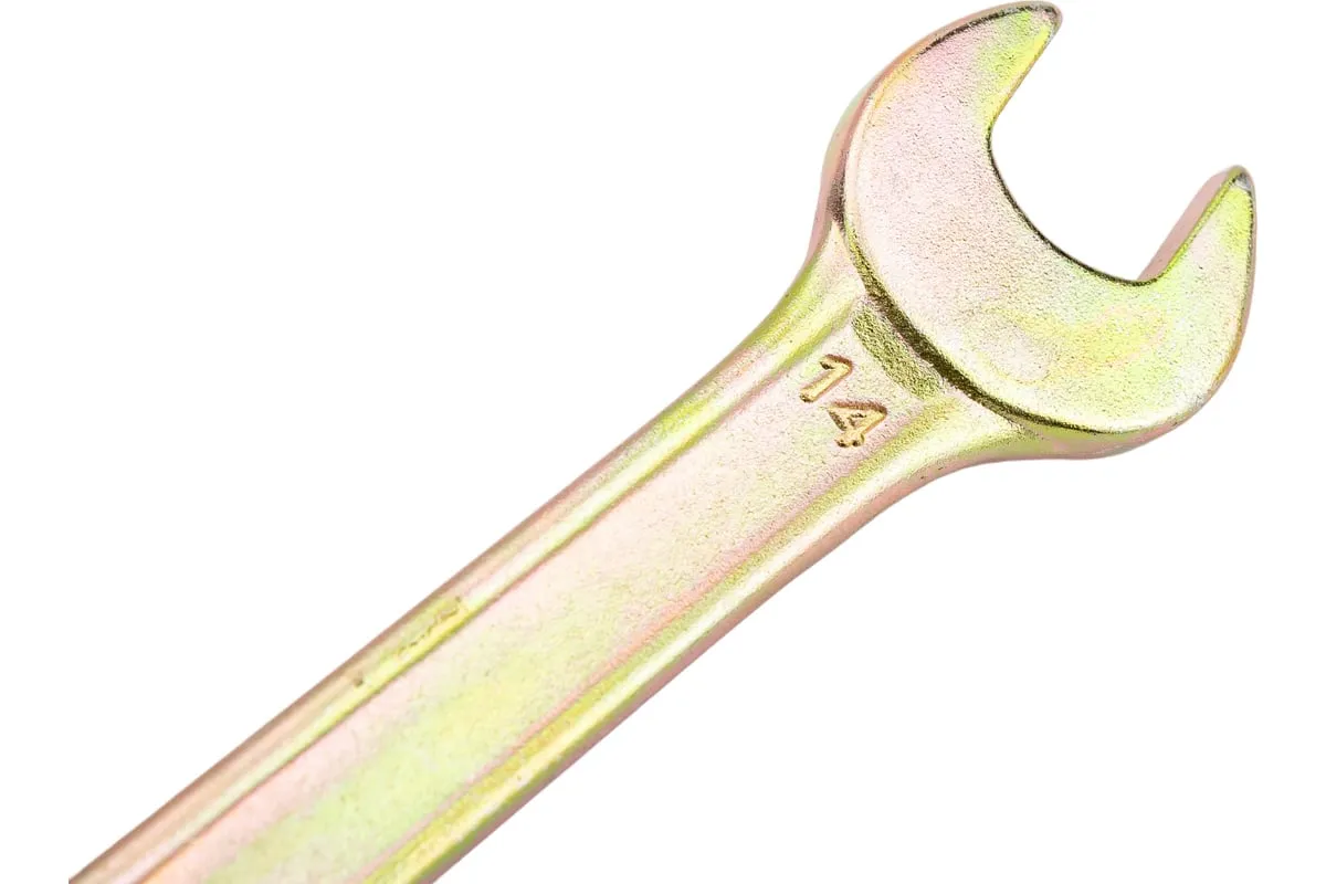 Рожковый ключ Сибртех 14308 с покрытием из желтого цинка имеет две рабочие части с размером зева 14 и 15 мм и предназначен для закручивания и откручивания резьбовых крепежей с шестигранными головками. Губки расположены под небольшим углом к оси тела ключа, что повышает удобство работы в ограниченном пространстве. Инструмент пригодится для проведения монтажных работ, сборки и разборки оборудования, ремонта техники, а также будет полезен в быту.