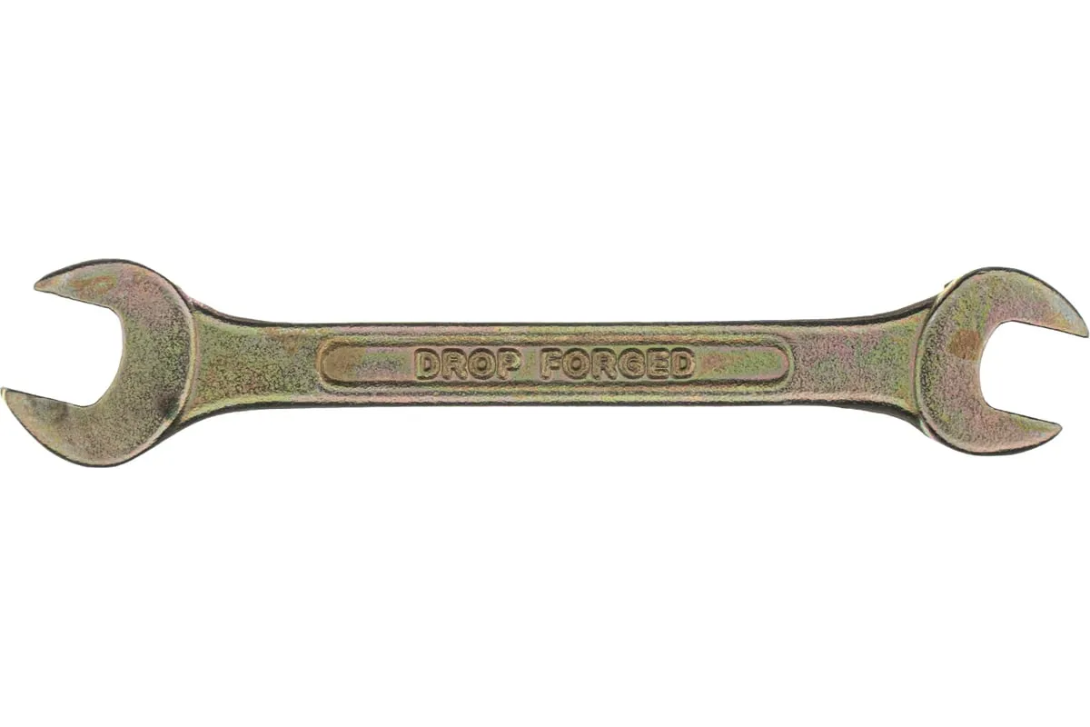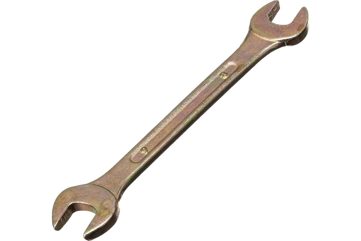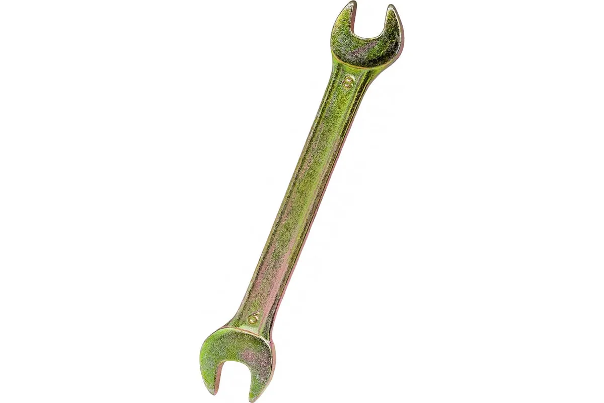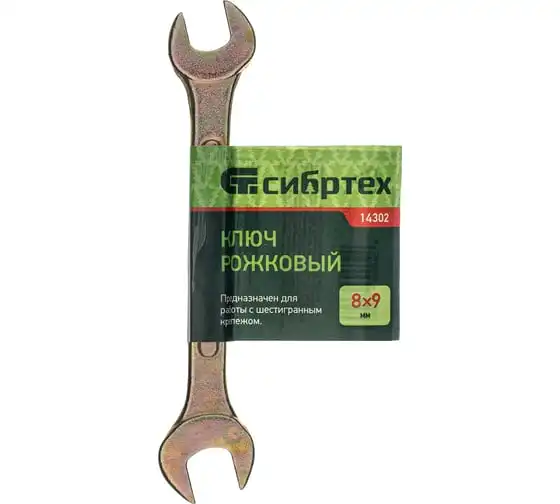 Рожковый ключ Сибртех 14302, 8 х 9 мм, с покрытием из желтого цинка, предназначен для закручивания и откручивания резьбовых крепежей с шестигранными головками. Имеет две рожковые части с размером зева 8 и 9 мм. Губки расположены под небольшим углом к оси тела ключа, что повышает удобство работы в ограниченном пространстве. Инструмент пригодится при проведении монтажных работ, сборке и разборке оборудования, для ремонта техники, а также будет полезен в быту.