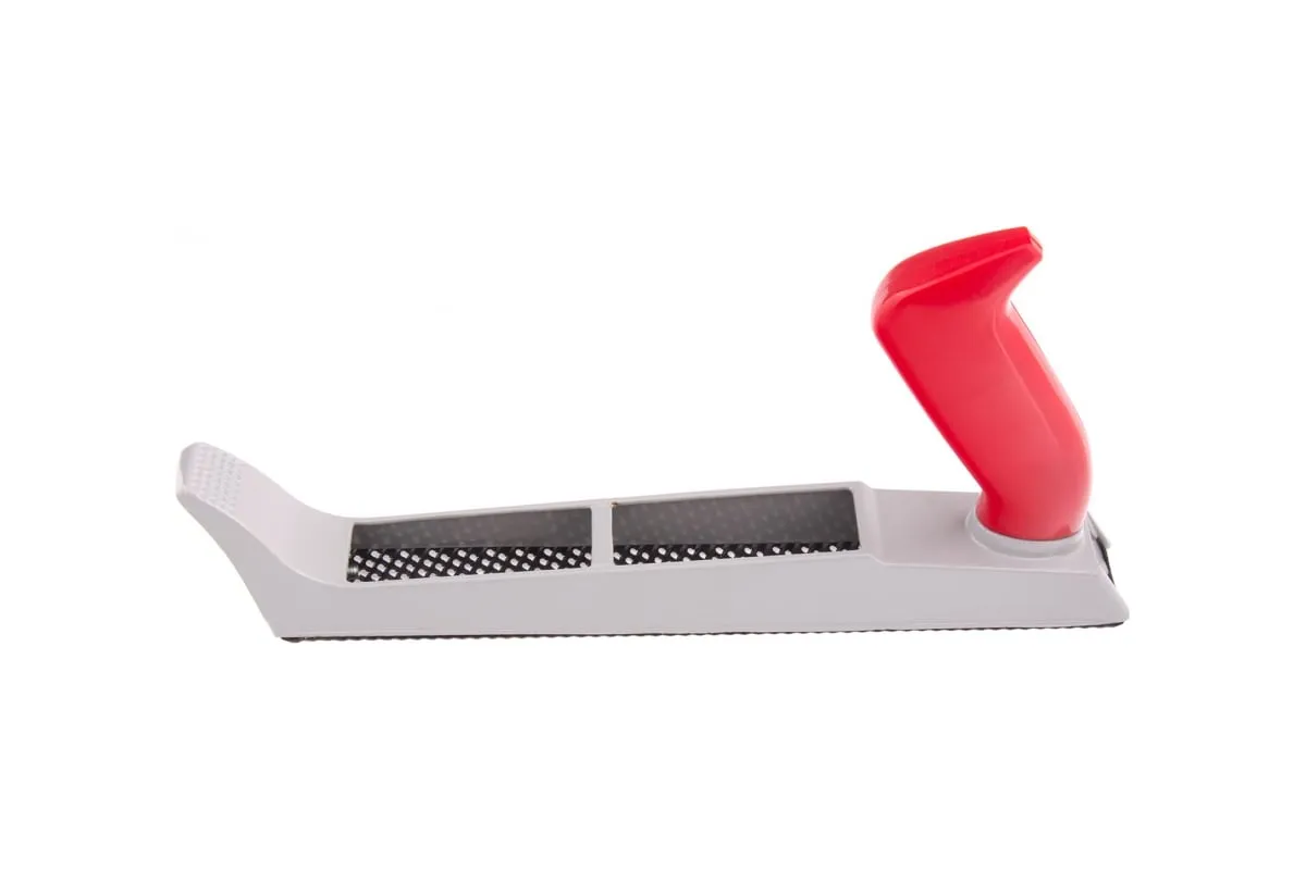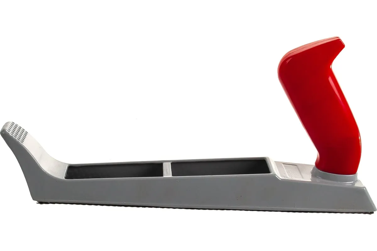 Рубанок, 250x42 мм, обдирочный, металлический, для гипсокартона MATRIX 879145 оснащается отверстиями для отвода стружки. Удобно использовать данный инструмент при обработке гипса, пластмассы и древесины.