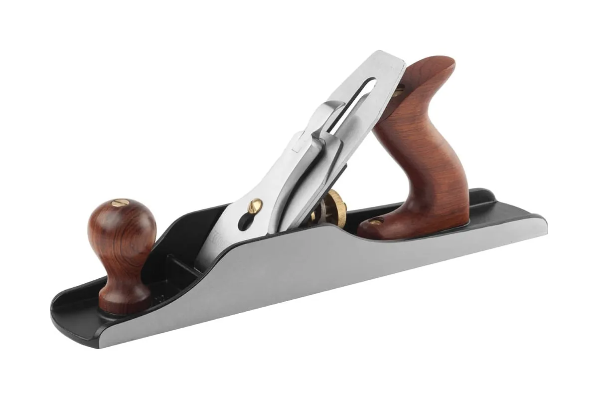 Рубанок KRAFTOOL A5 Premium металлический 350x50 мм, 18527-35 предназначен для строгания древесины при выполнении столярных и плотничных работ. Лезвие поставляется с предварительной заточкой. Нож рубанка изготовлен из инструментальной углеродистой стали. Корпус отлит из чугуна высшего качества. Удлиненная подошва для финишных работ. Высокоточный механизм обеспечивает полноценную трехмерную регулировку положения лезвия с пятью степенями свободы. Эргономичные рукоятки из красного дерева Бубинга. Специальные шлифовка и полировка рукоятки создают нескользящую поверхность.