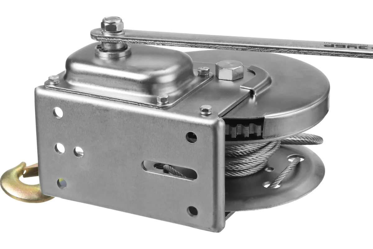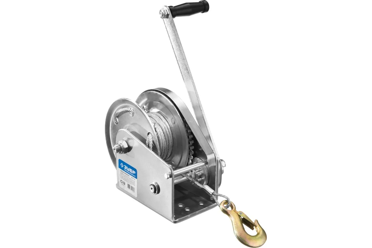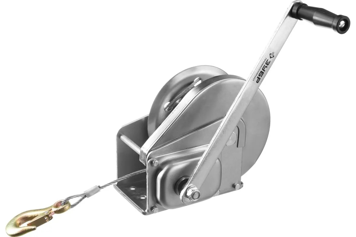Ручная барабанная лебедка Зубр ПРОФЕССИОНАЛ 0,9т 8м 43117-0.9 служит как для перемещения груза в горизонтальной плоскости, так и для поднятия и опускания его в вертикальной. Лебедка оснащена прочным корпусом, барабаном, на который при помощи рукоятки накручивается стальной трос, и крюком. Оборудование оснащено надежным фрикционным механизмом.