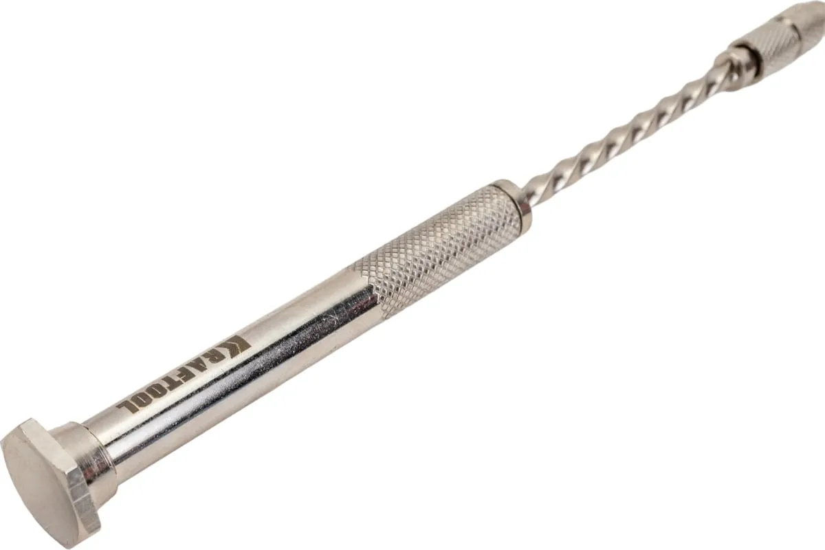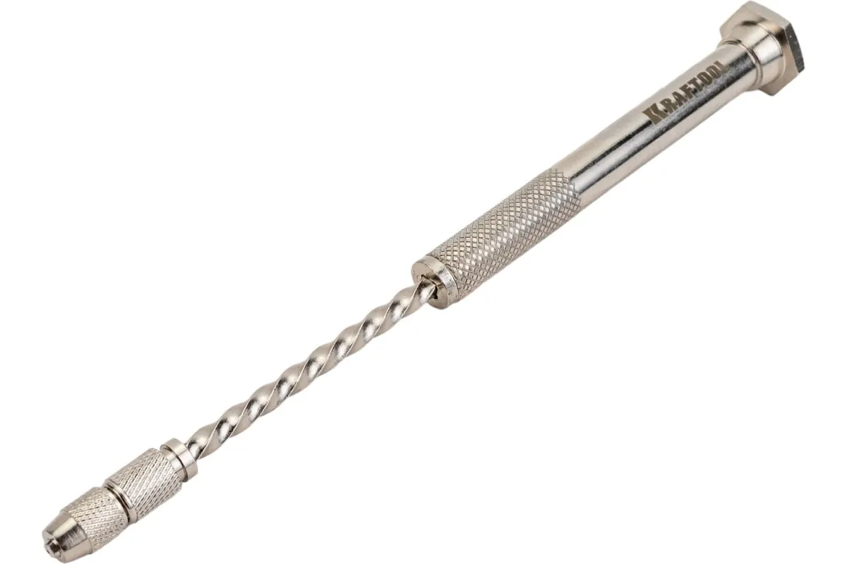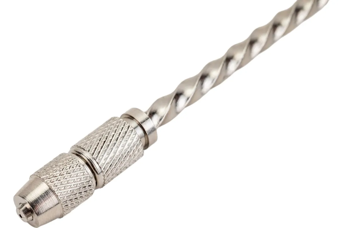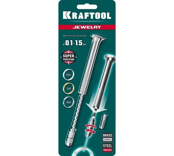 Профессиональная механическая ручная дрель для особо точных ювелирных и электронных работ. Механизм вращения из закаленной стали. Корпус из хромированной латуни. Два стальных четырёхлепестковых зажима в комплекте. Для свёрл Ø 0,1-1,5 мм. Два полных оборота сверла за одно нажатие. Большой ресурс. Простота в использовании. Незаменимый помощник для работ, требующих повышенной аккуратности.